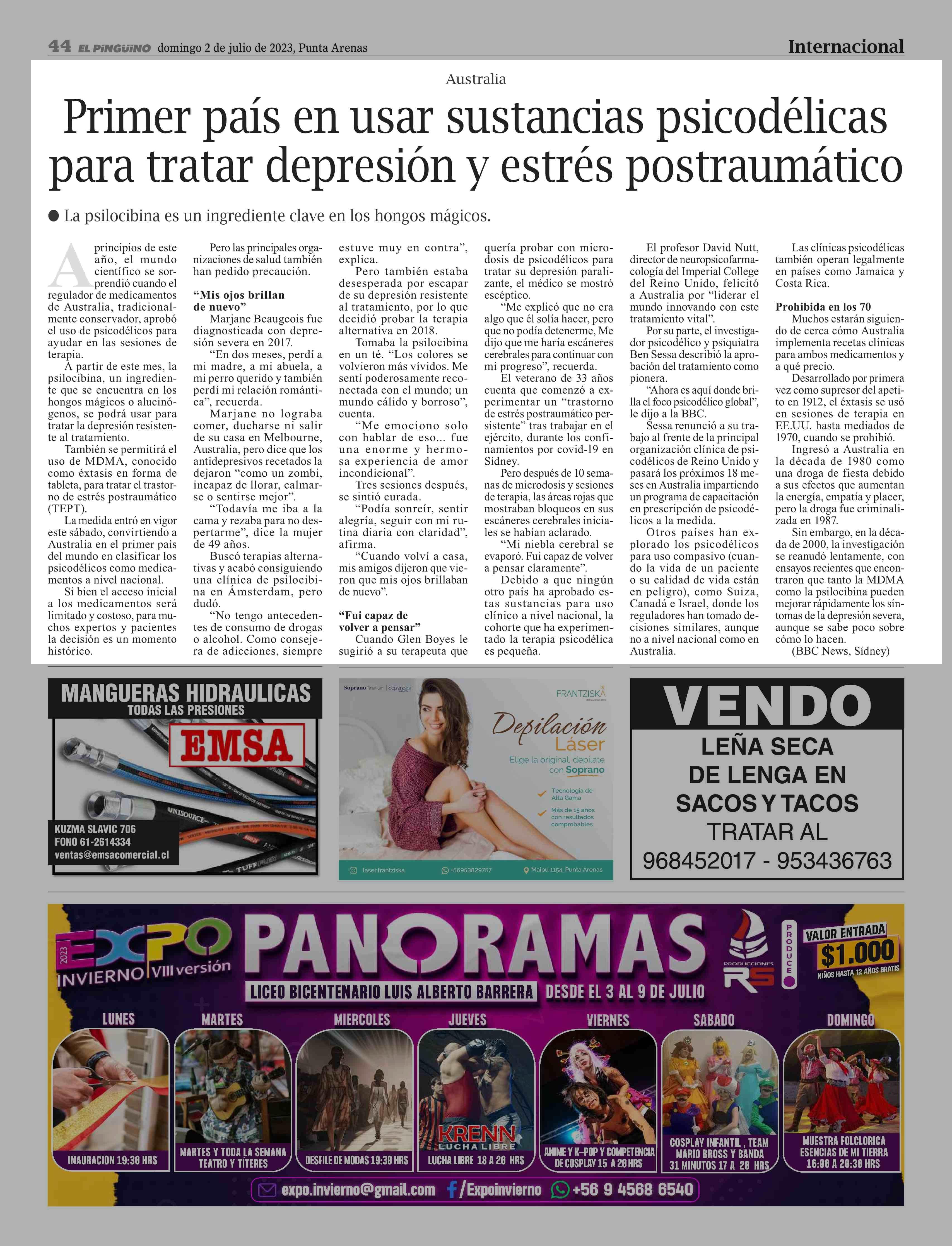Primer país en usar sustancias psicodélicas para tratar depresión y estrés postraumático 02-07-2023 El Pingüino |