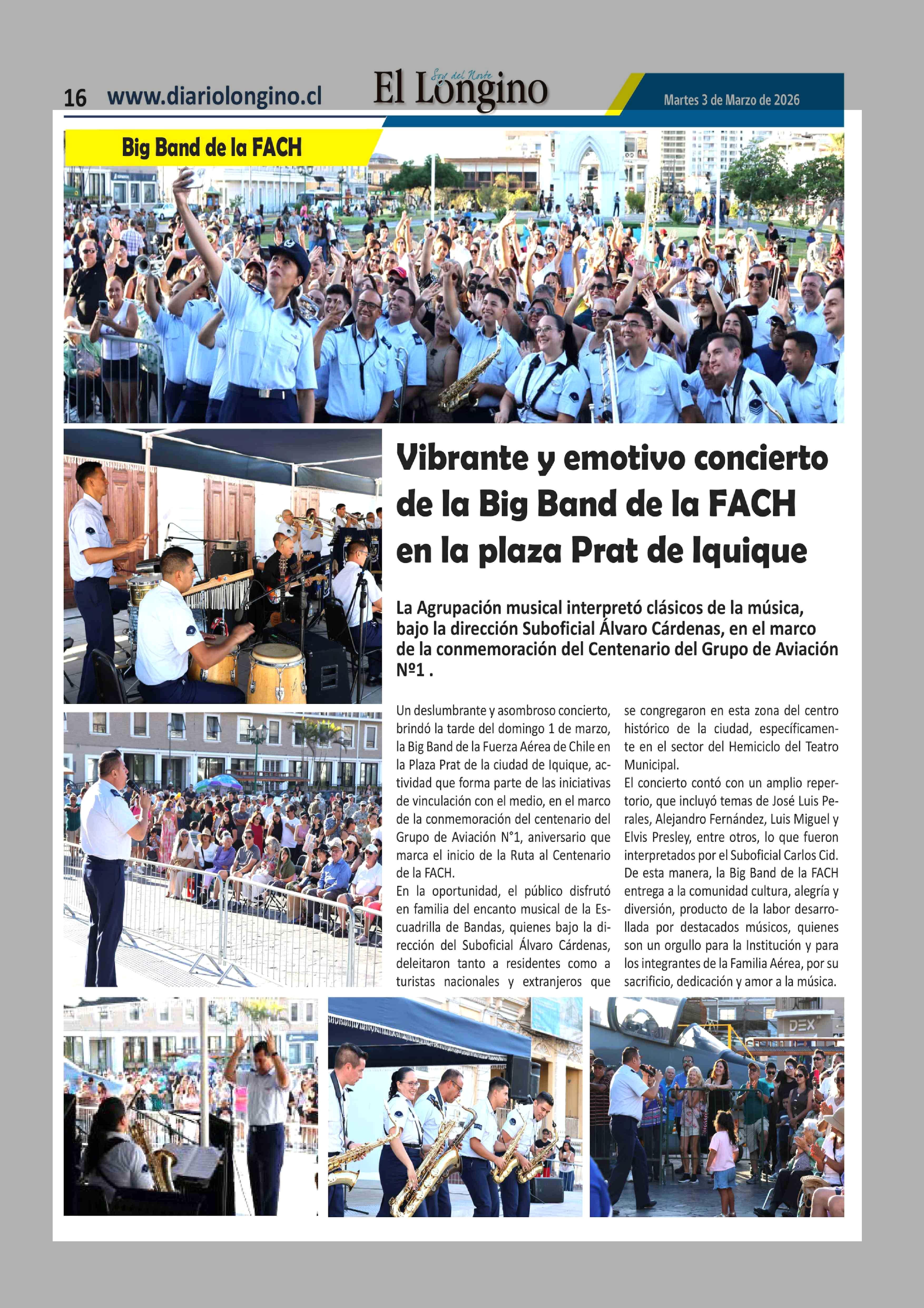 Título: Vibrante y emotivo concierto de la Big Band de la FACH en la plaza Prat de Iquique