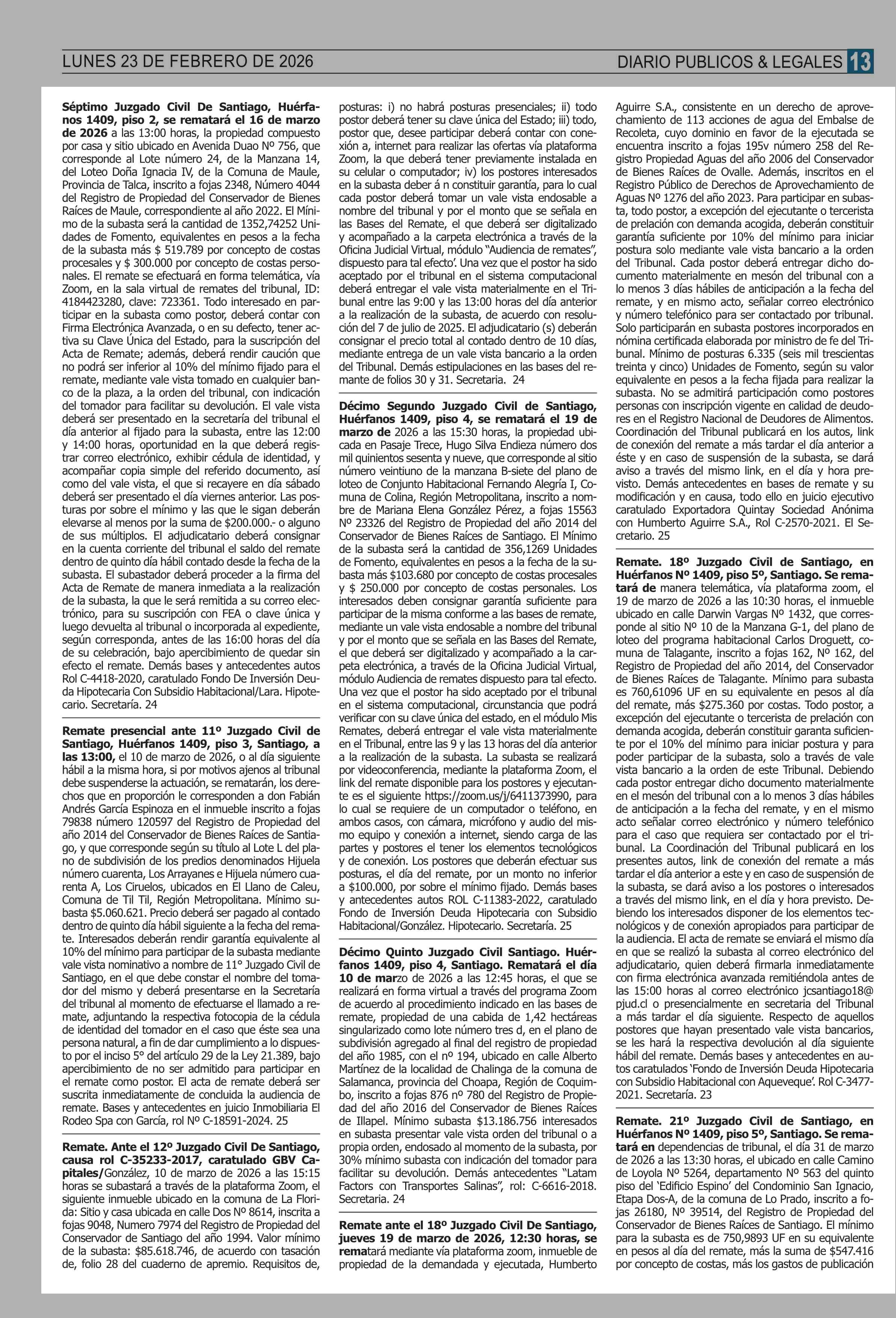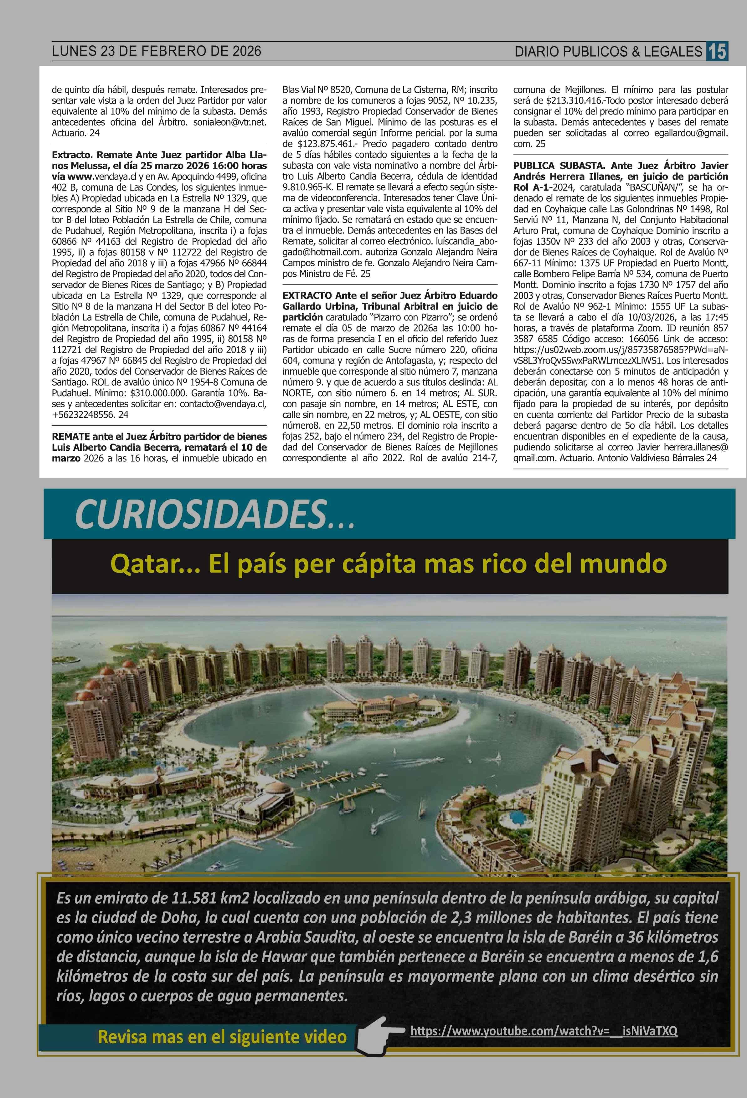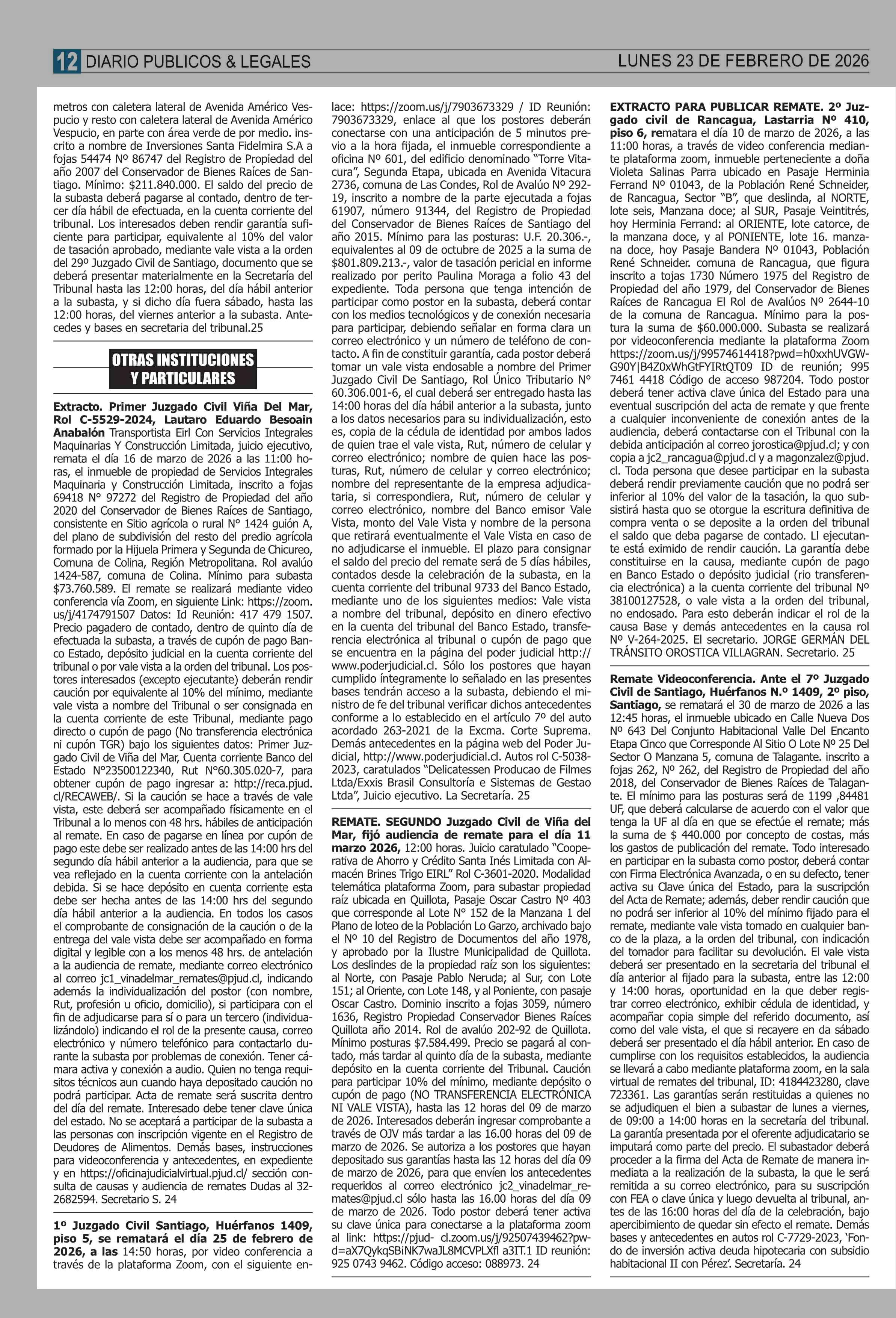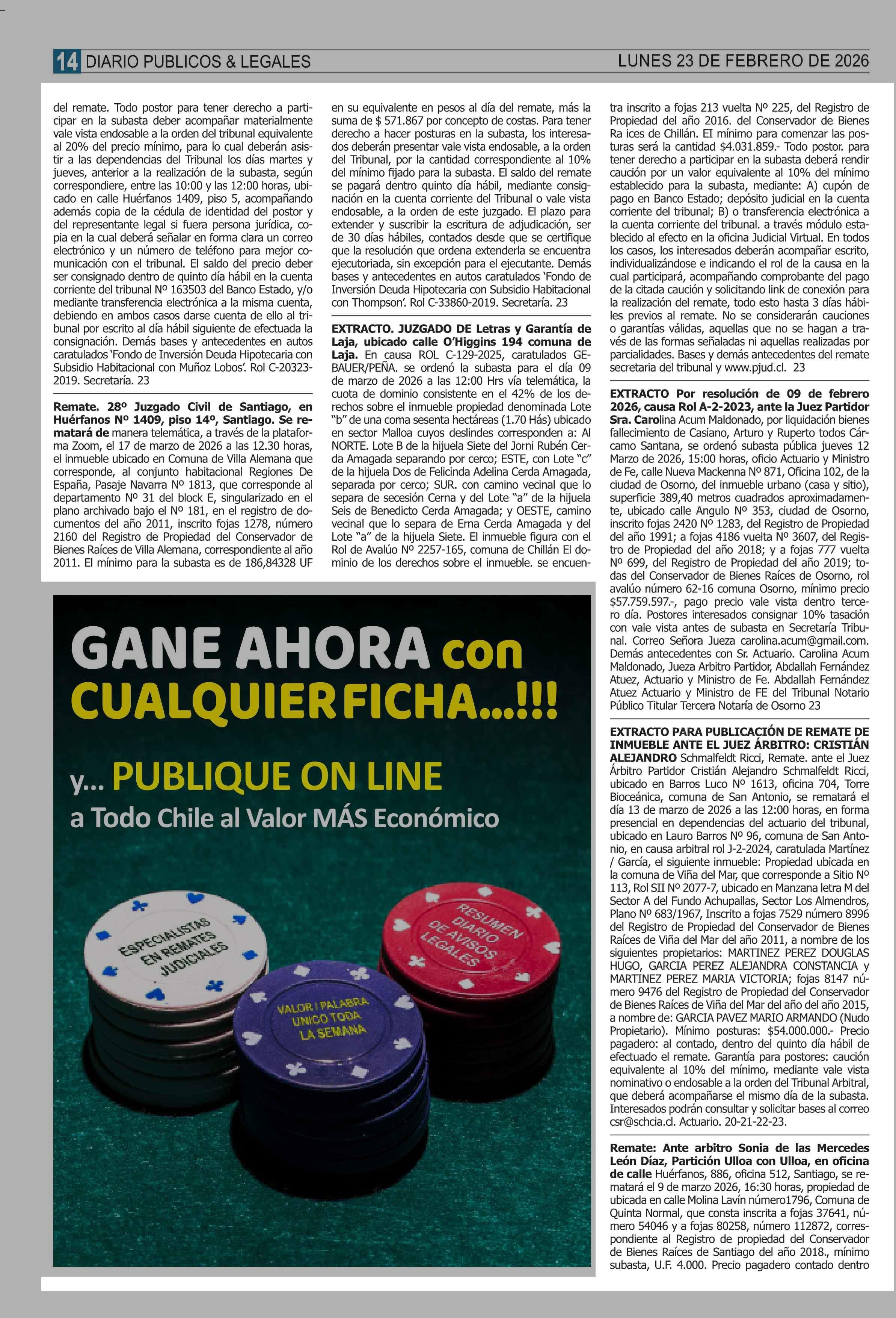 | Fecha: | 23-02-2026 | Sector: | Remates | Región: | Región Metropolitana de Santiago |