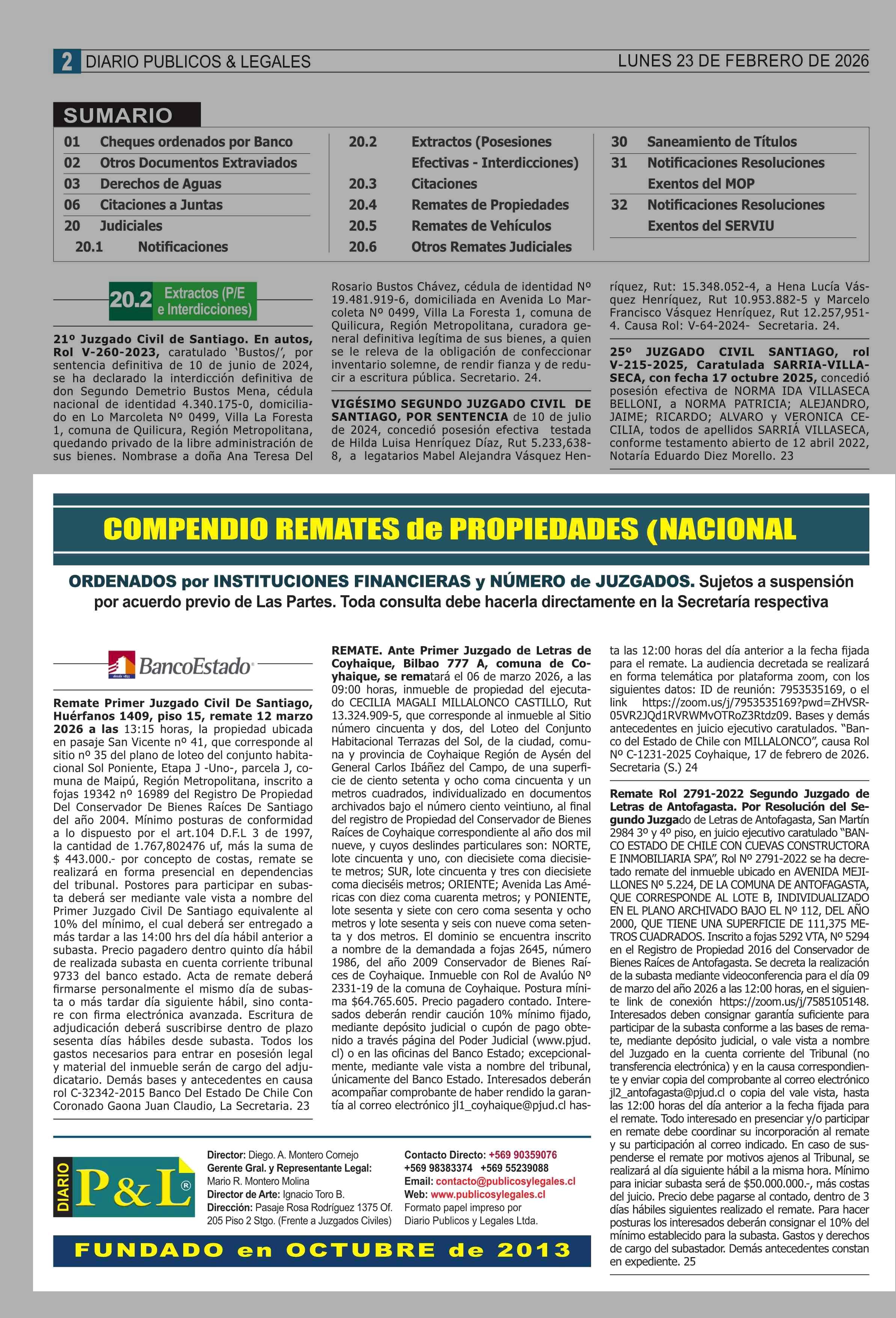 REMATES: COMPENDIO REMATES de PROPIEDADES (NACIONAL 23-02-2026 P&L Públicos y Legales |