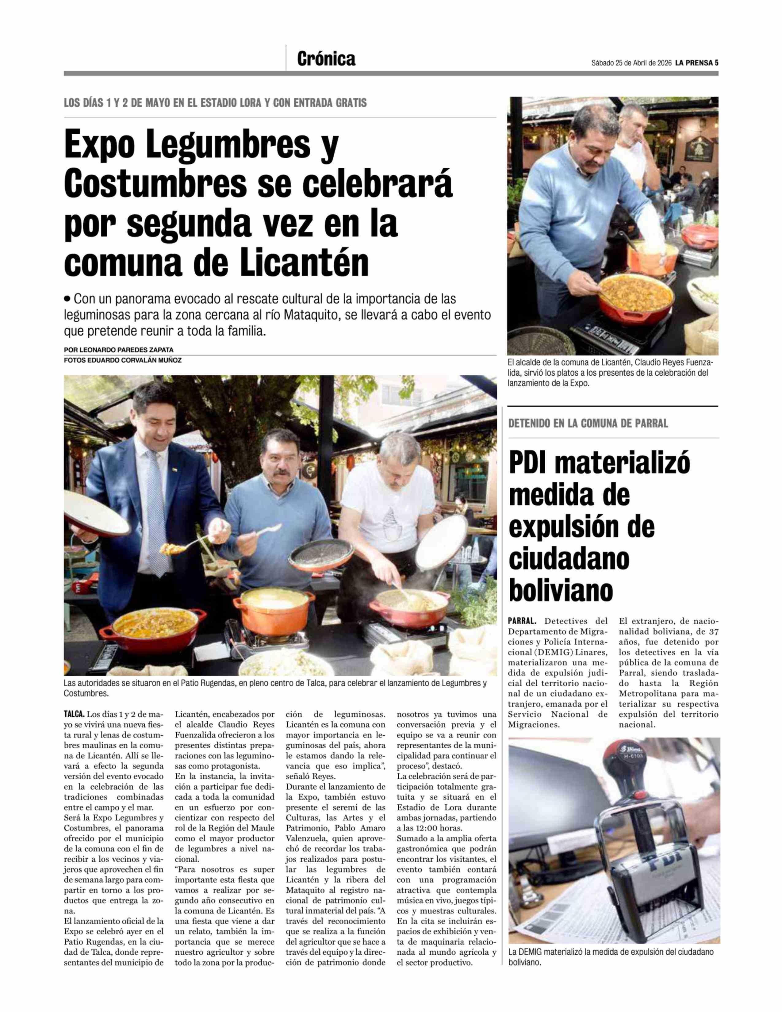 | Fecha: | 25-04-2026 | Sector: | Noticia general | Región: | Región del Maule |