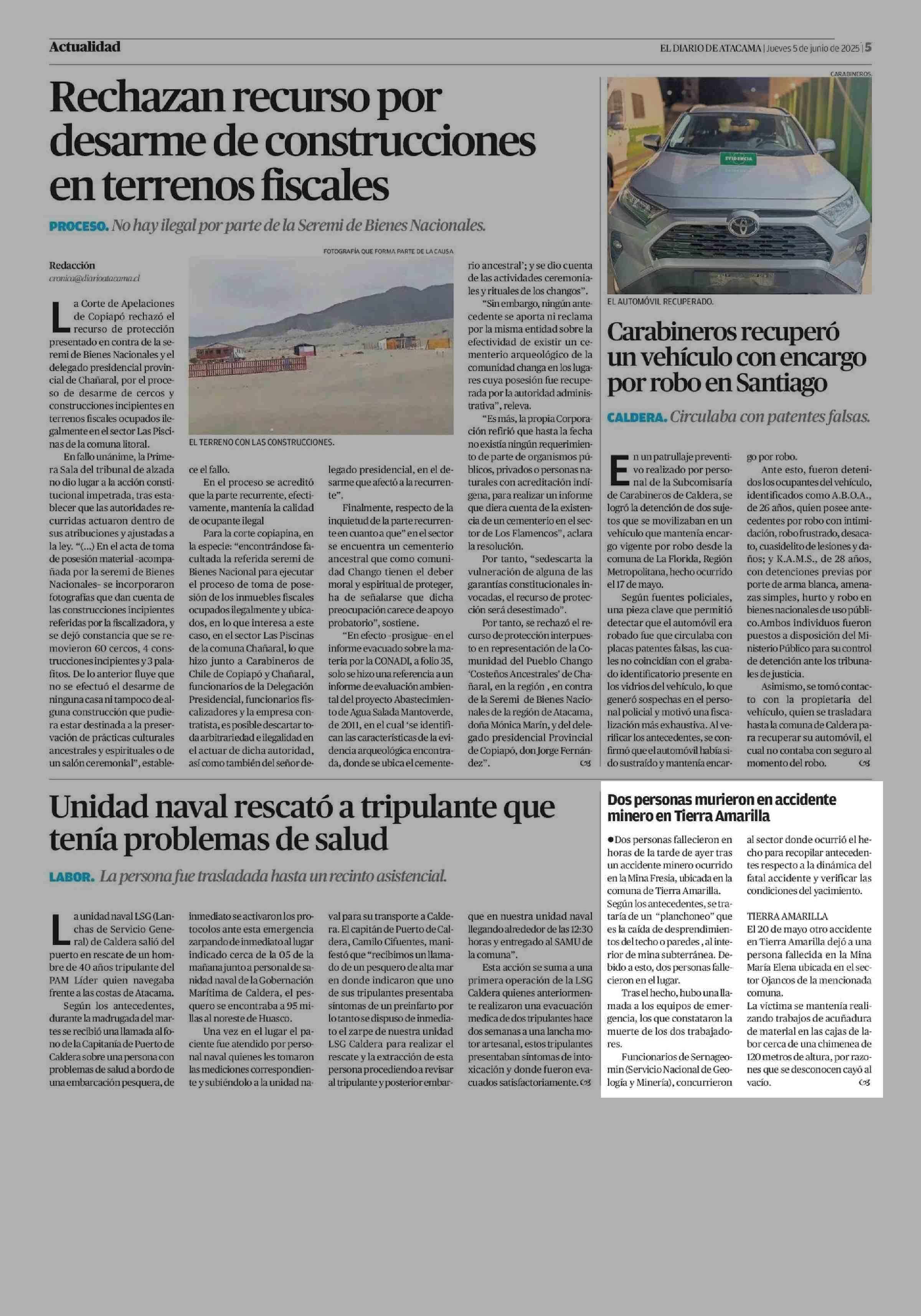 | Fecha: | 05-06-2025 | Sector: | Noticia general | Región: | Región de Atacama |