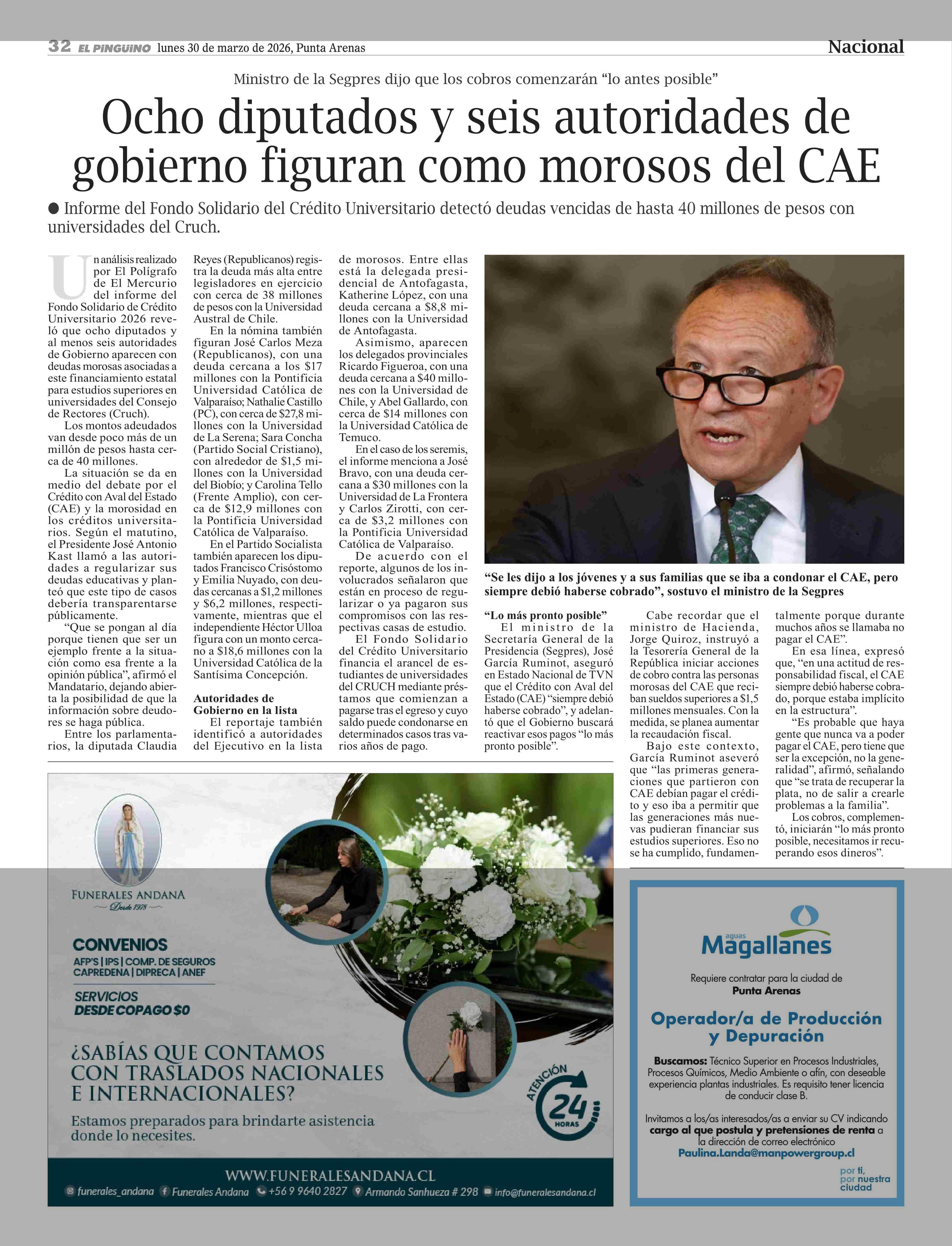 Fecha: 30-03-2026 Sector: Noticia general Región: Región de Magallanes y de la Antártica Chilena