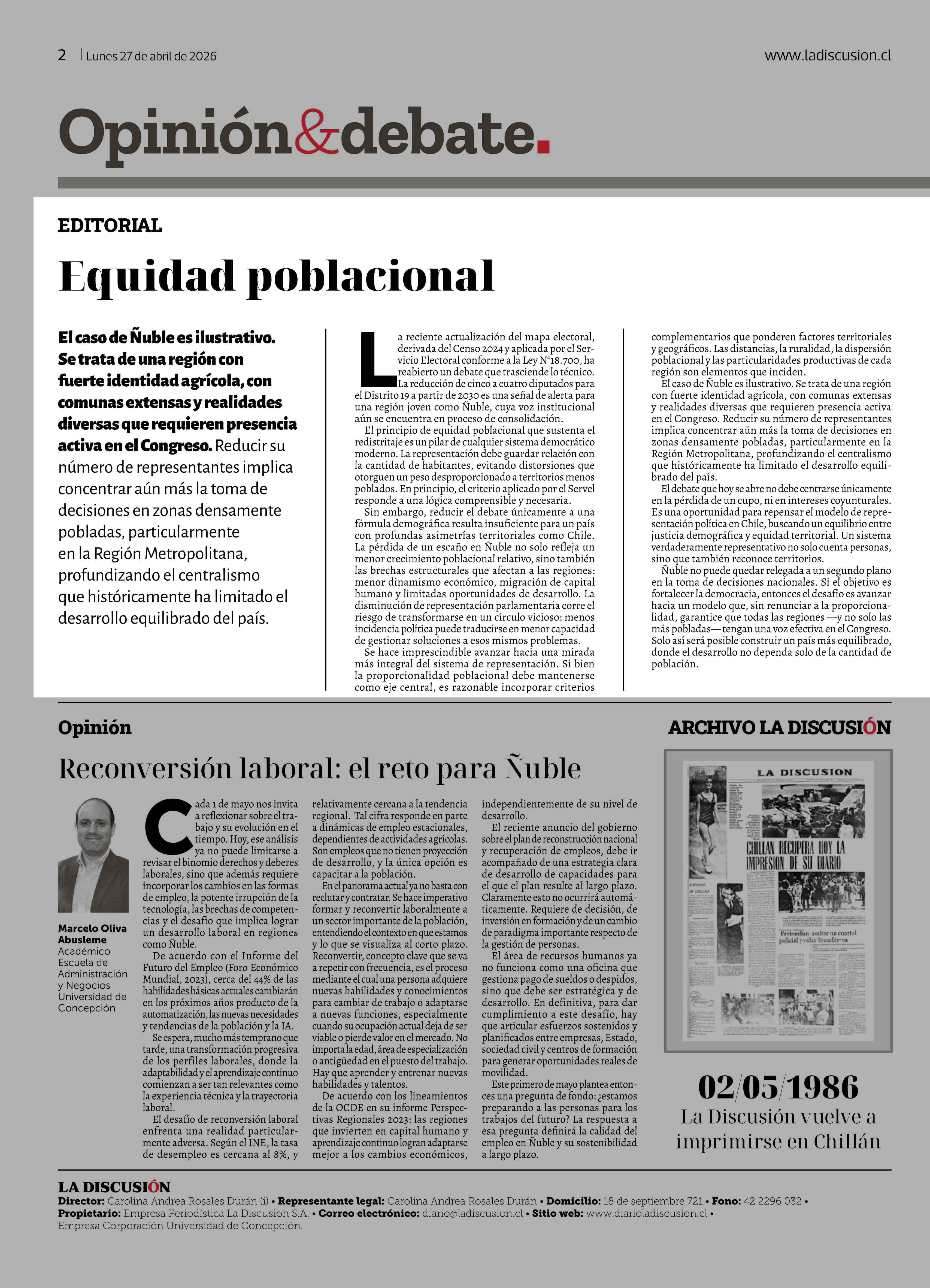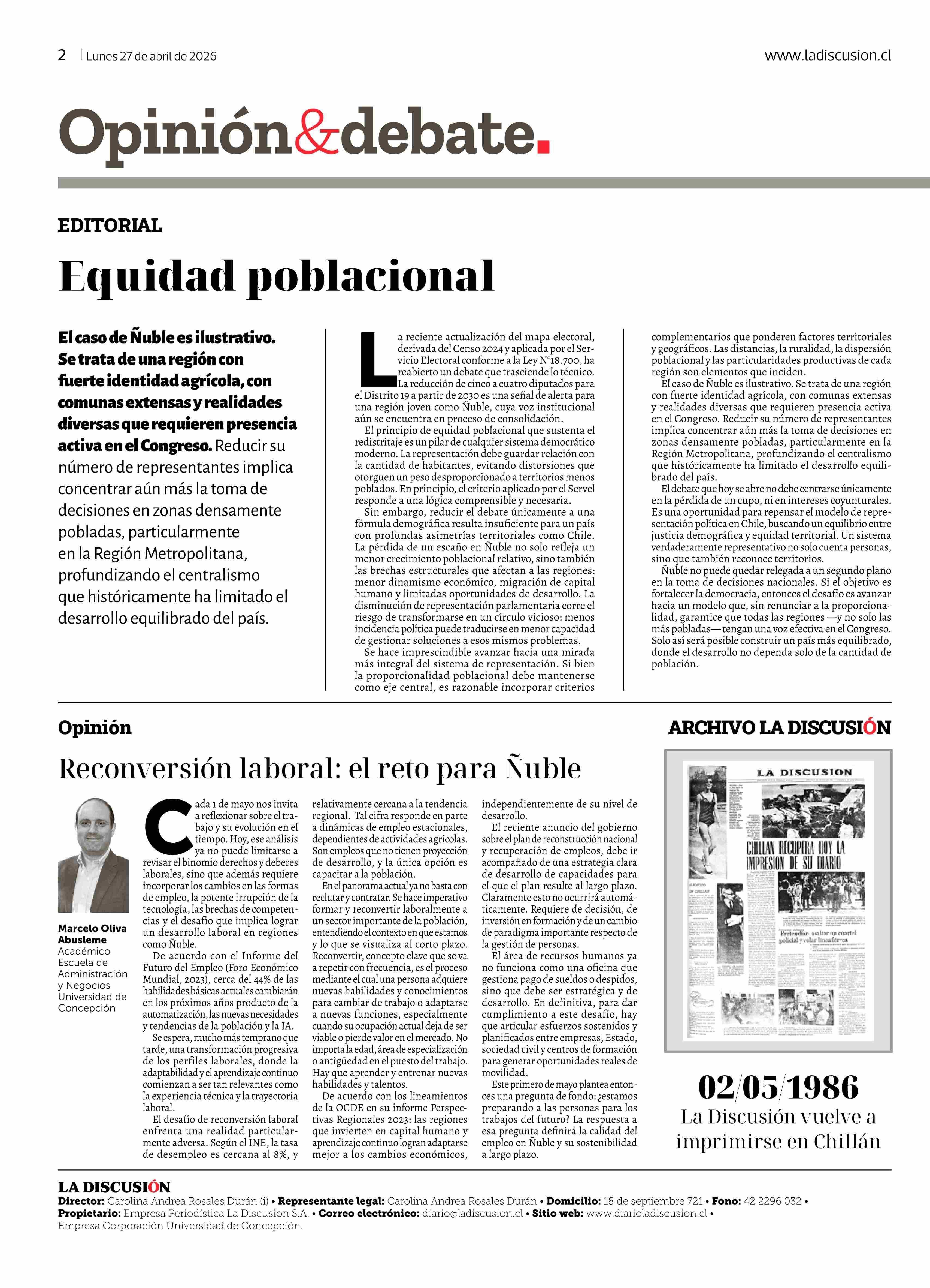 Fecha: 27-04-2026 Sector: Editorial Región: Región del Ñuble