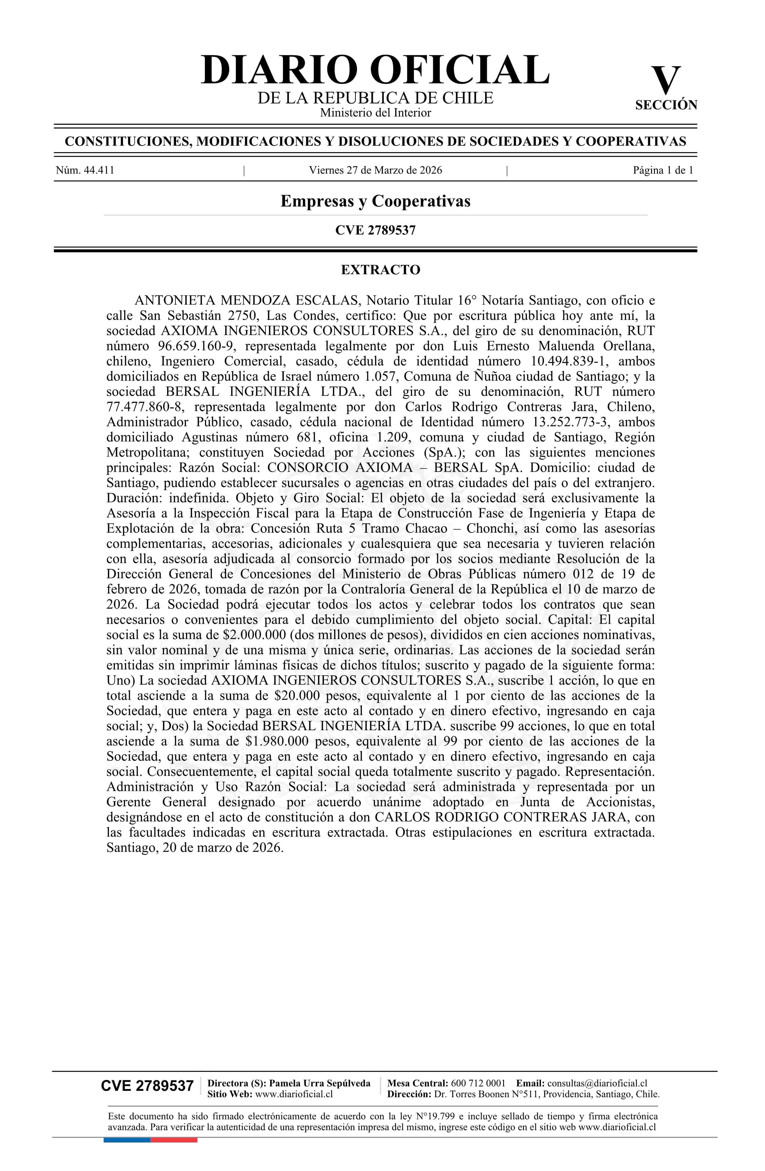 Título: CONSORCIO AXIOMA – BERSAL SpA