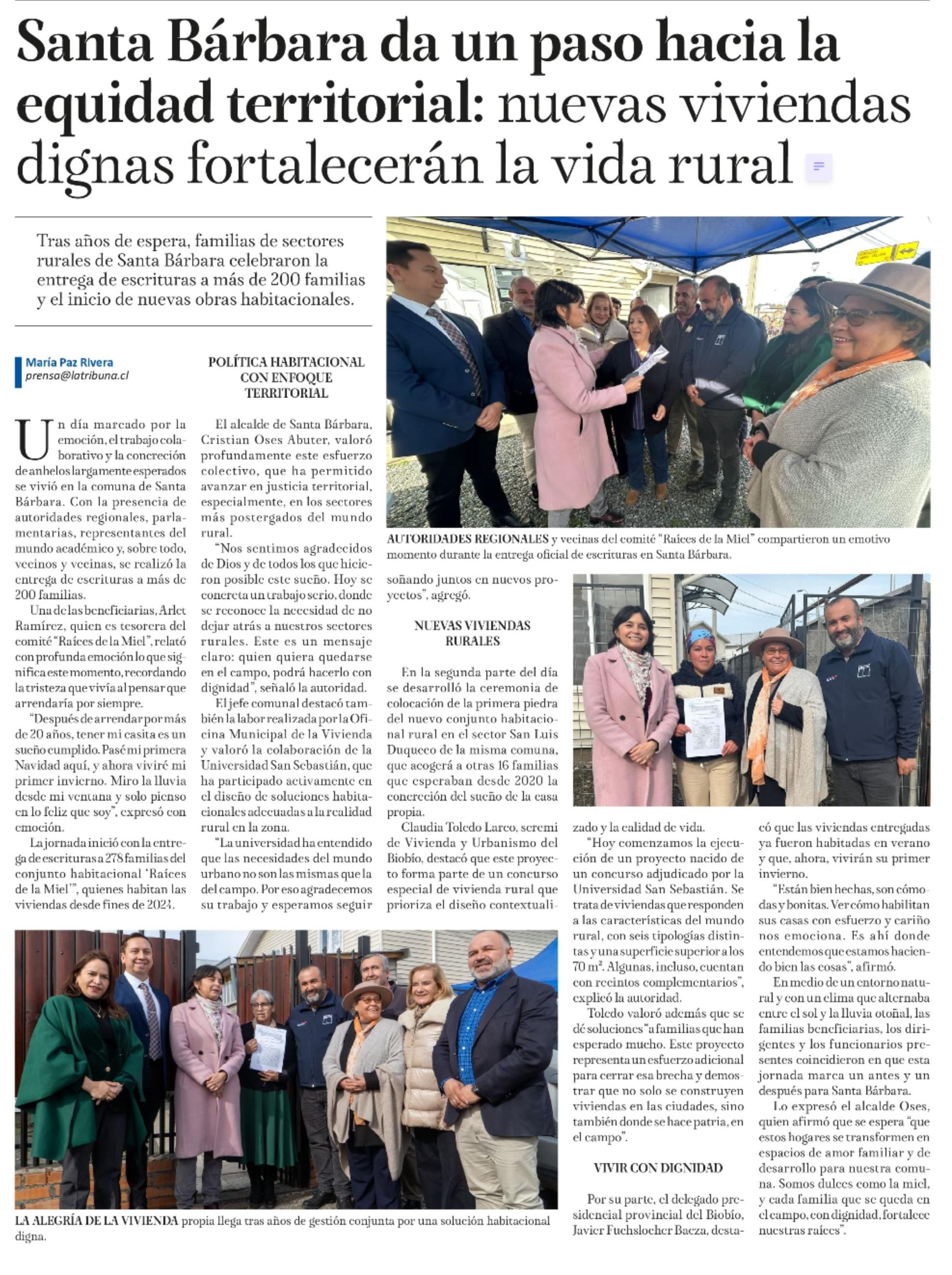 Santa Bárbara da un paso hacia la equidad territorial: nuevas viviendas dignas fortalecerán la vida rural 24-05-2025 La Tribuna |