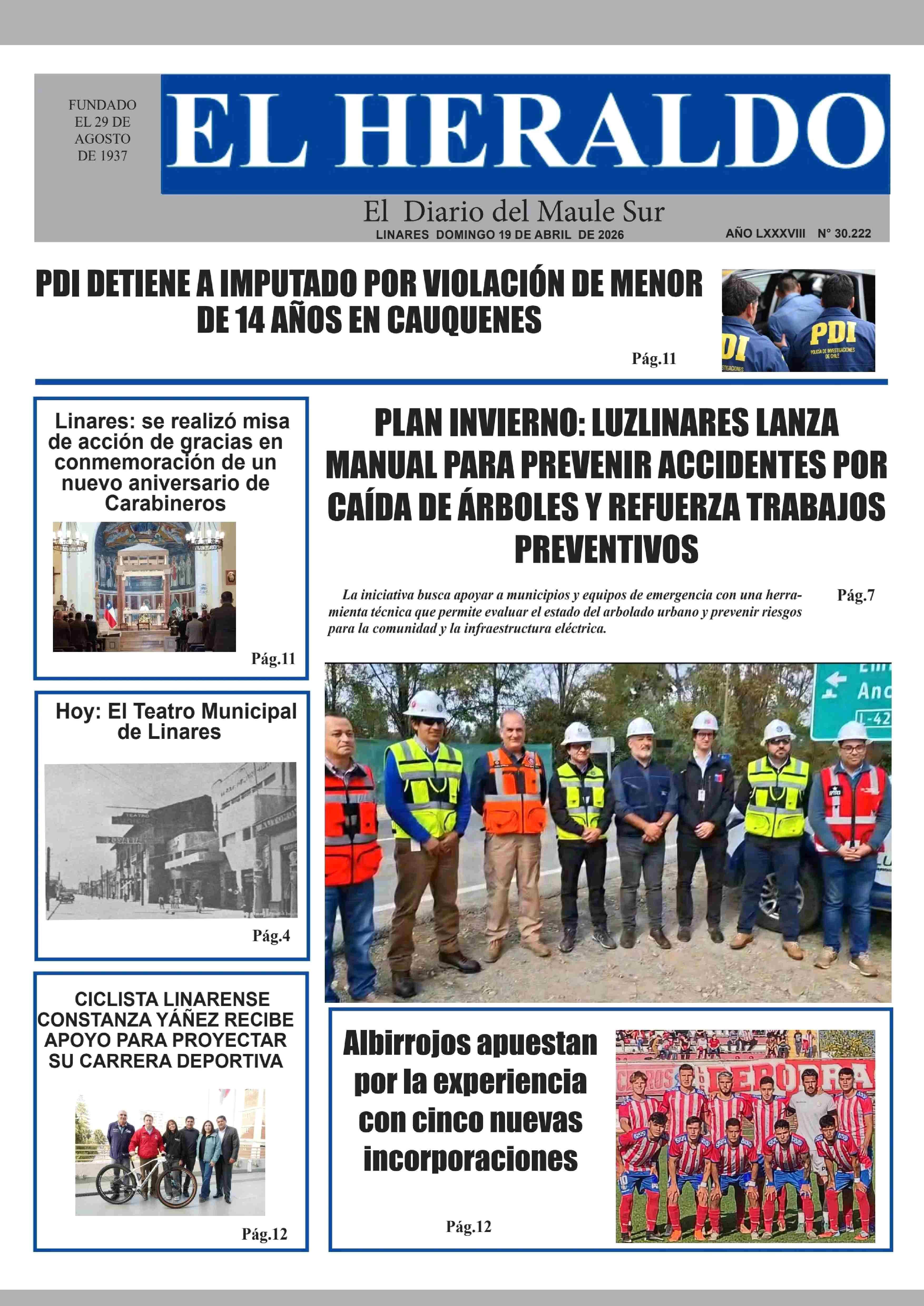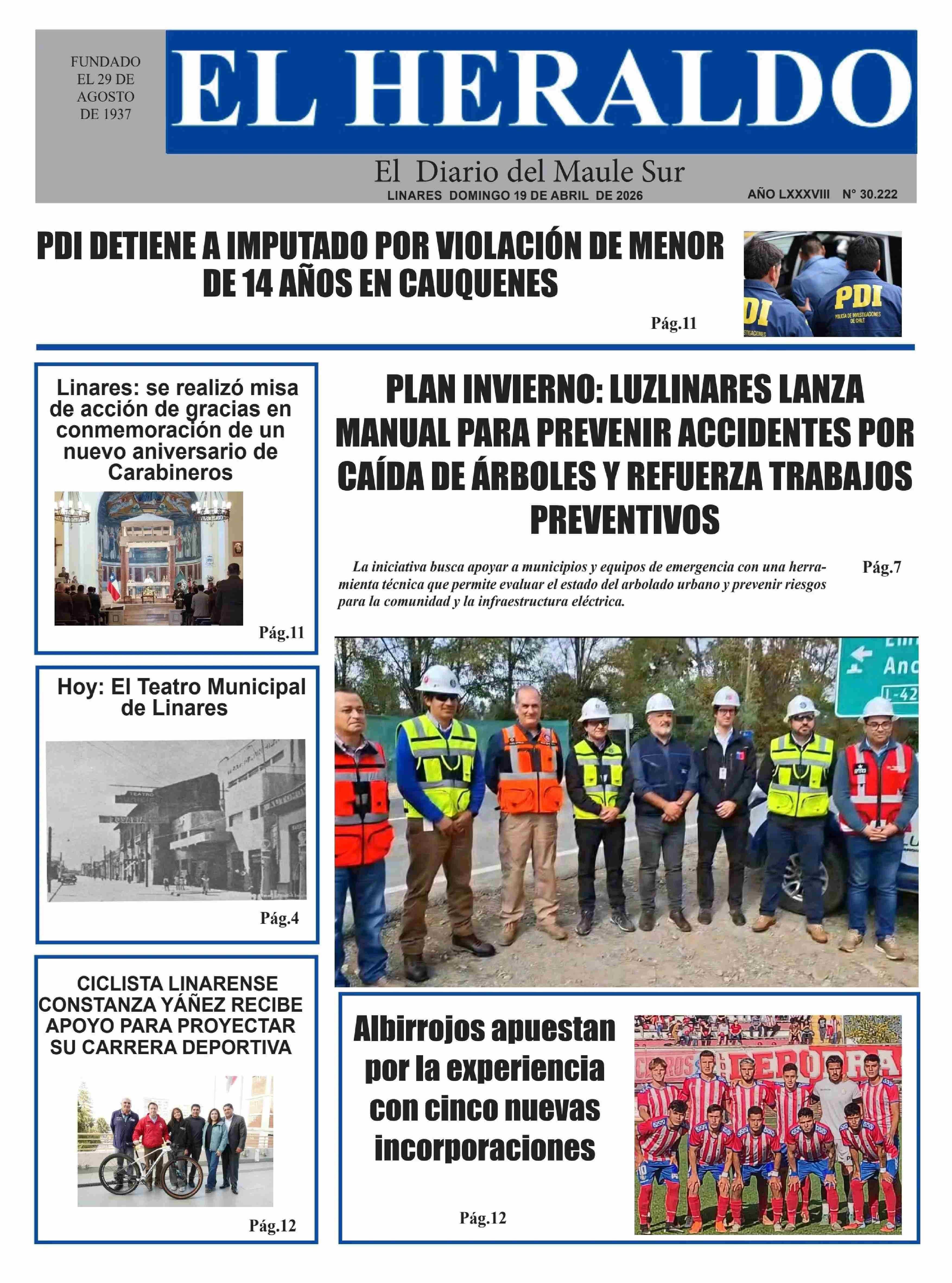 PORTADA EL HERALDO DE LINARES - CHILE 19-04-2026 El Heraldo |