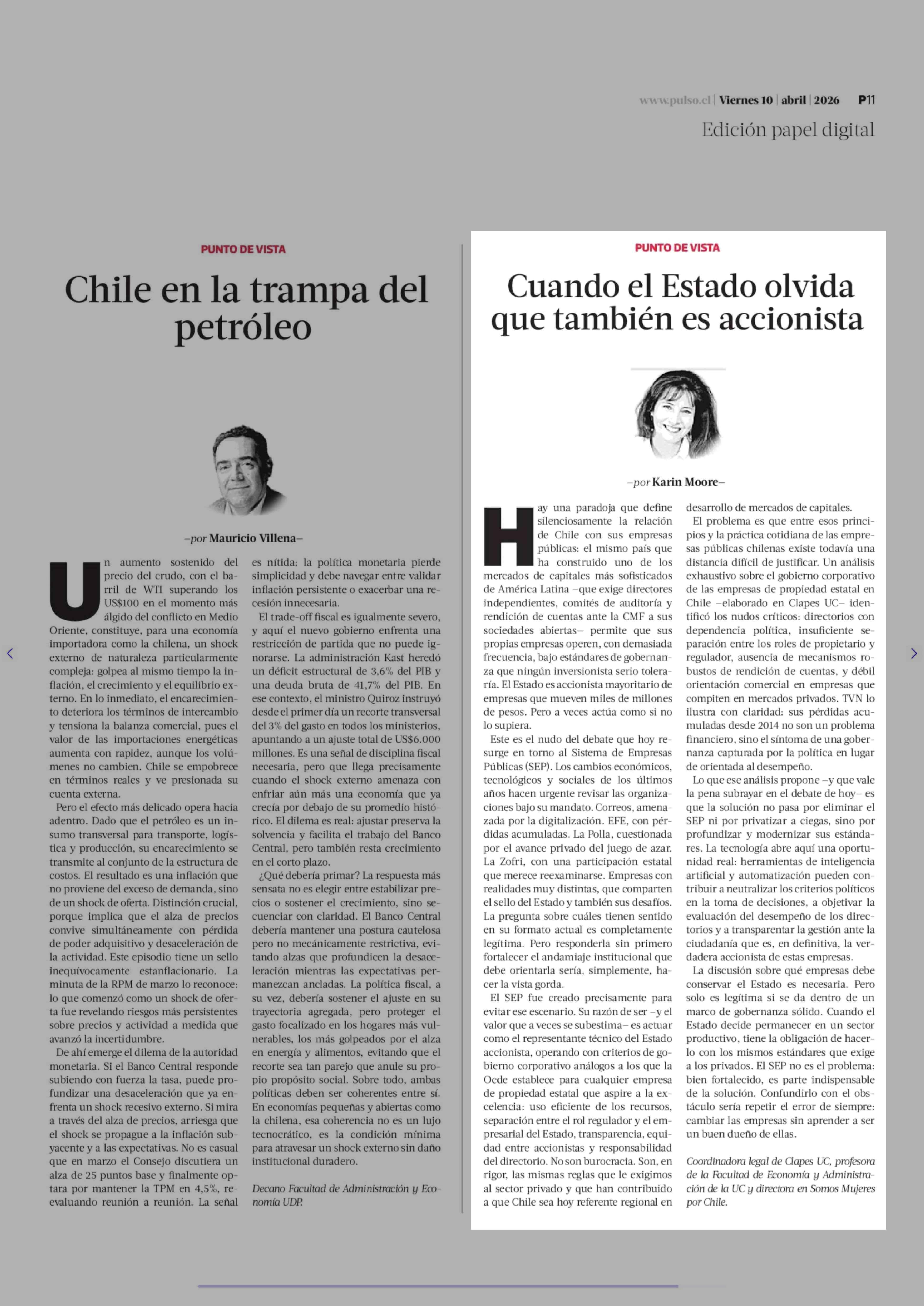 Título: Columnas de Opinión: Cuando el Estado olvida que también es accionista