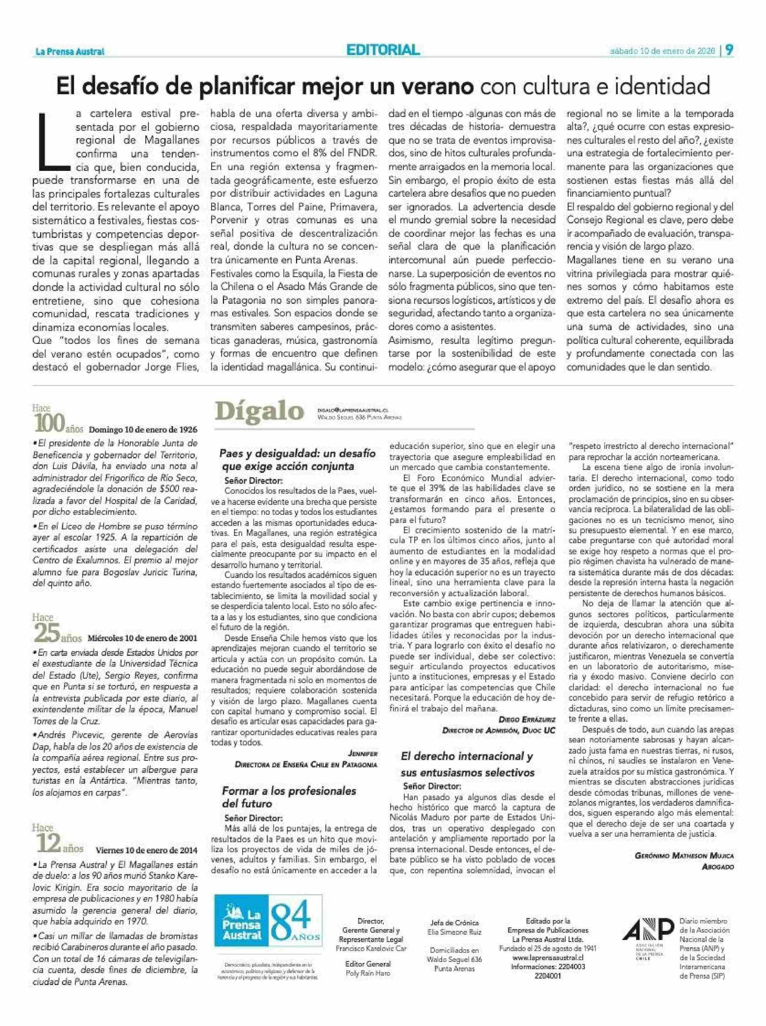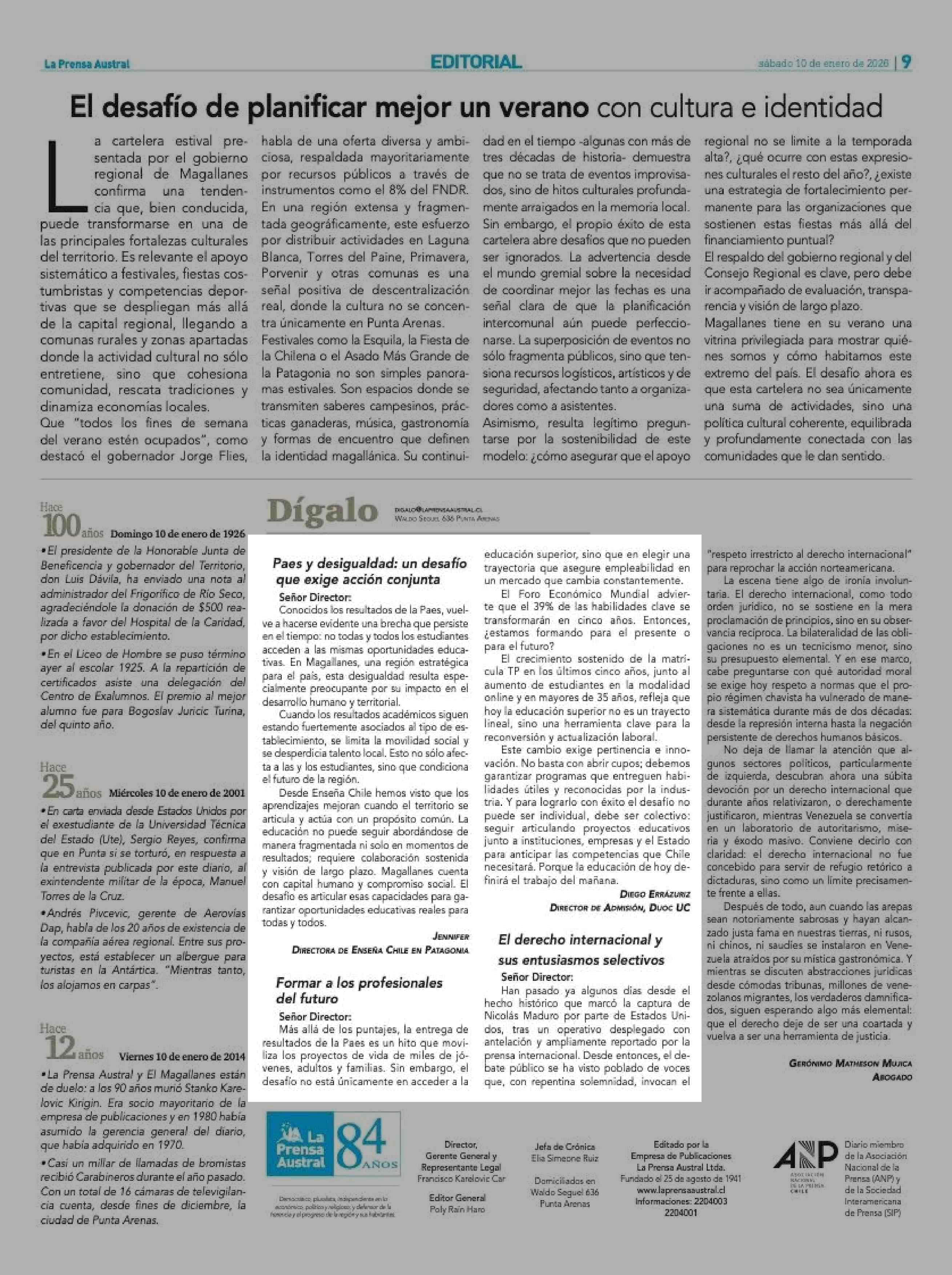 Cartas: Formar a los profesionales del futuro 10-01-2026 La Prensa Austral |