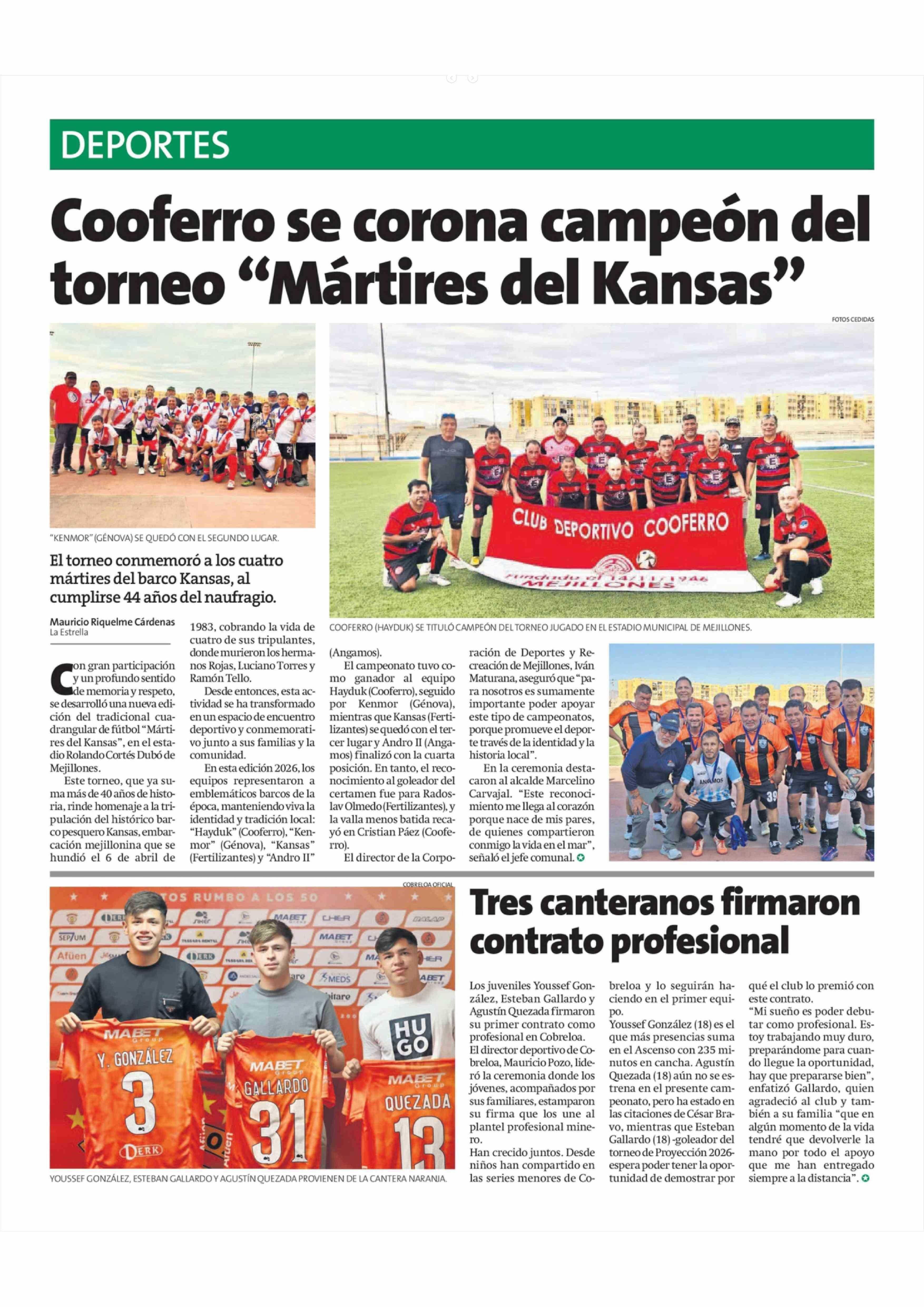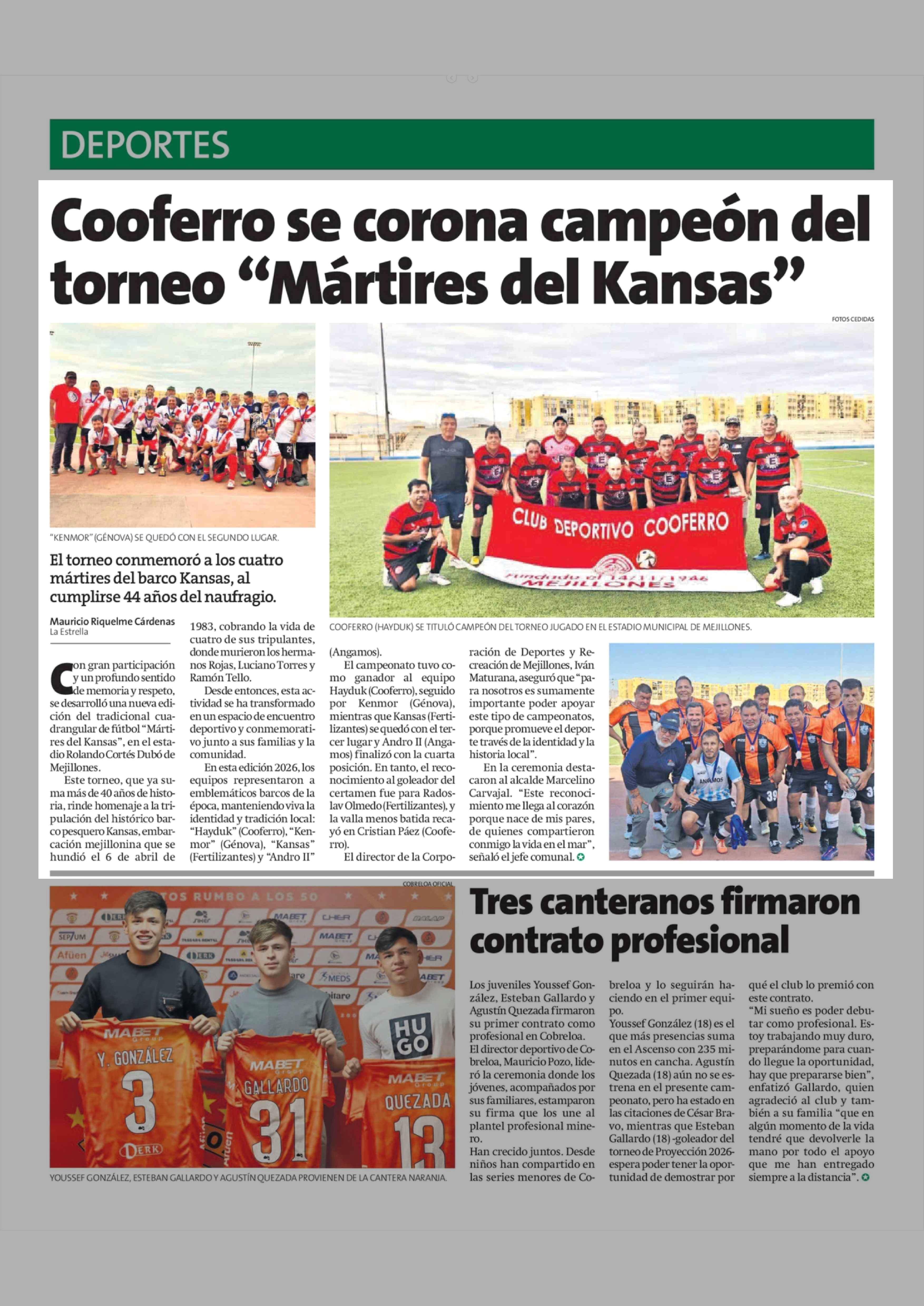 Título: Cooferro se corona campeón del torneo "Mártires del Kansas"