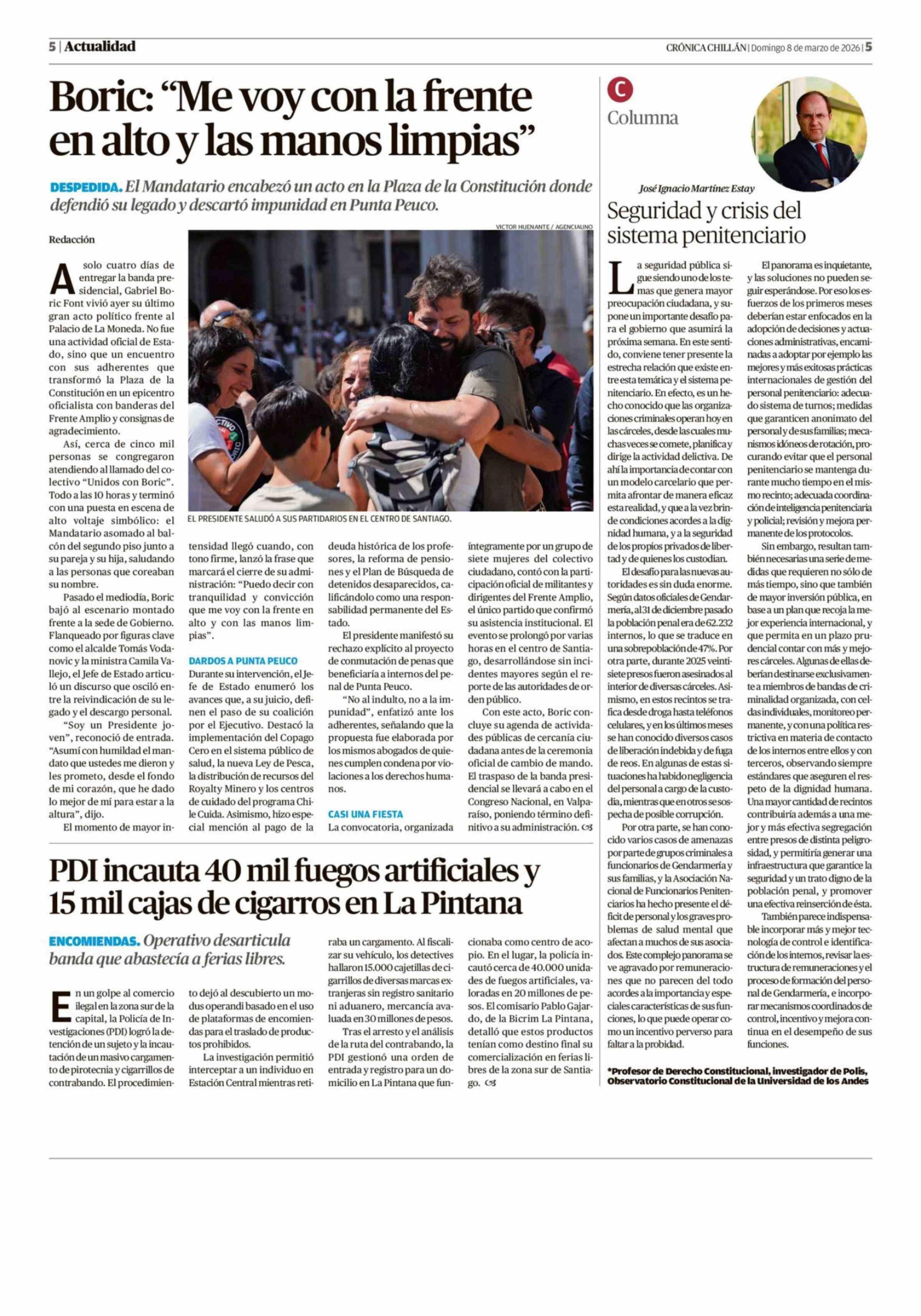 Columnas de Opinión: Seguridad y crisis del sistema penitenciario 08-03-2026 Crónica de Chillán |