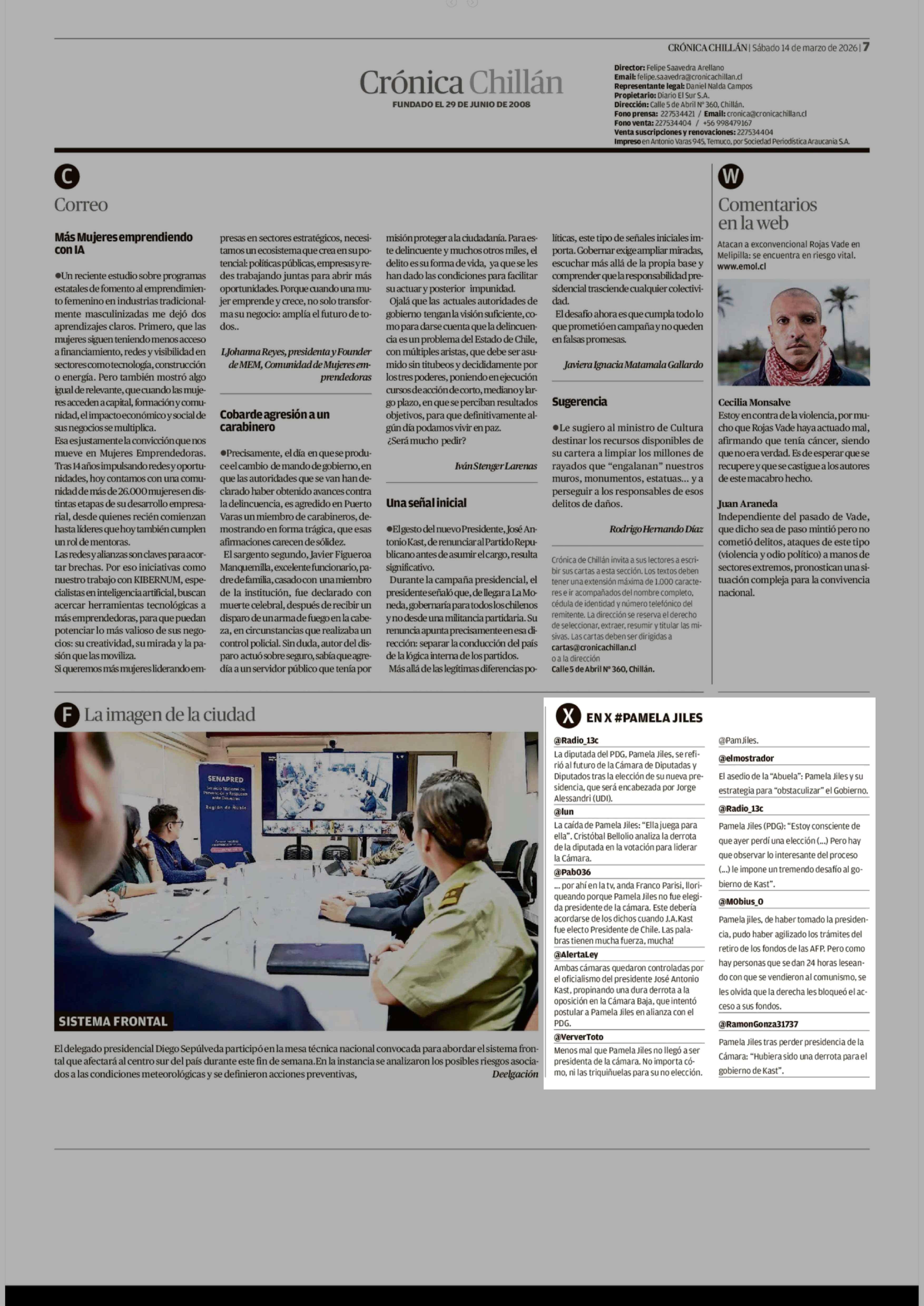 EN X #PAMELA JILES 14-03-2026 Crónica de Chillán |