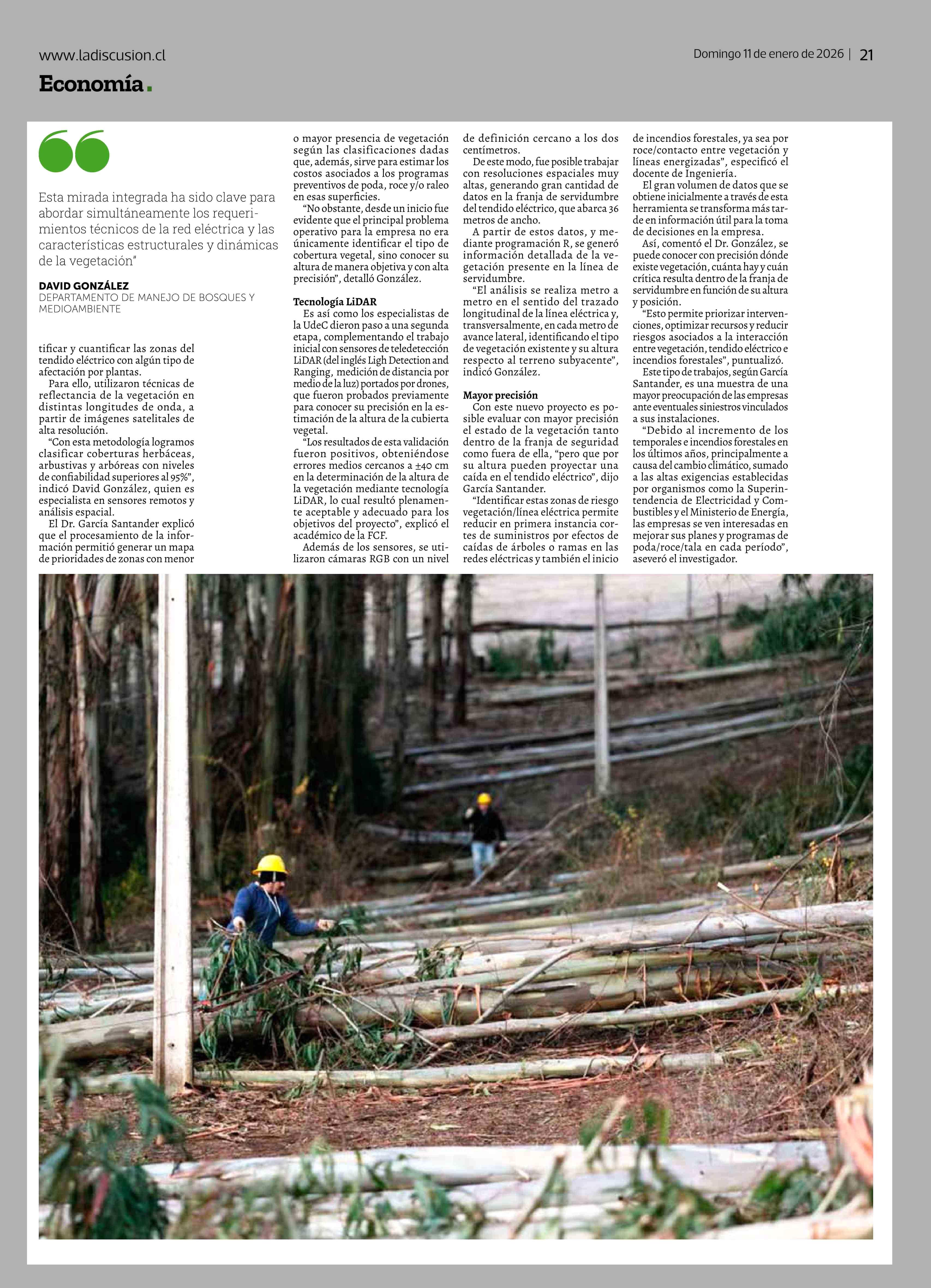 Desarrollan metodología para prevenir incendios forestales en zonas de tendido eléctrico 11-01-2026 La Discusión |