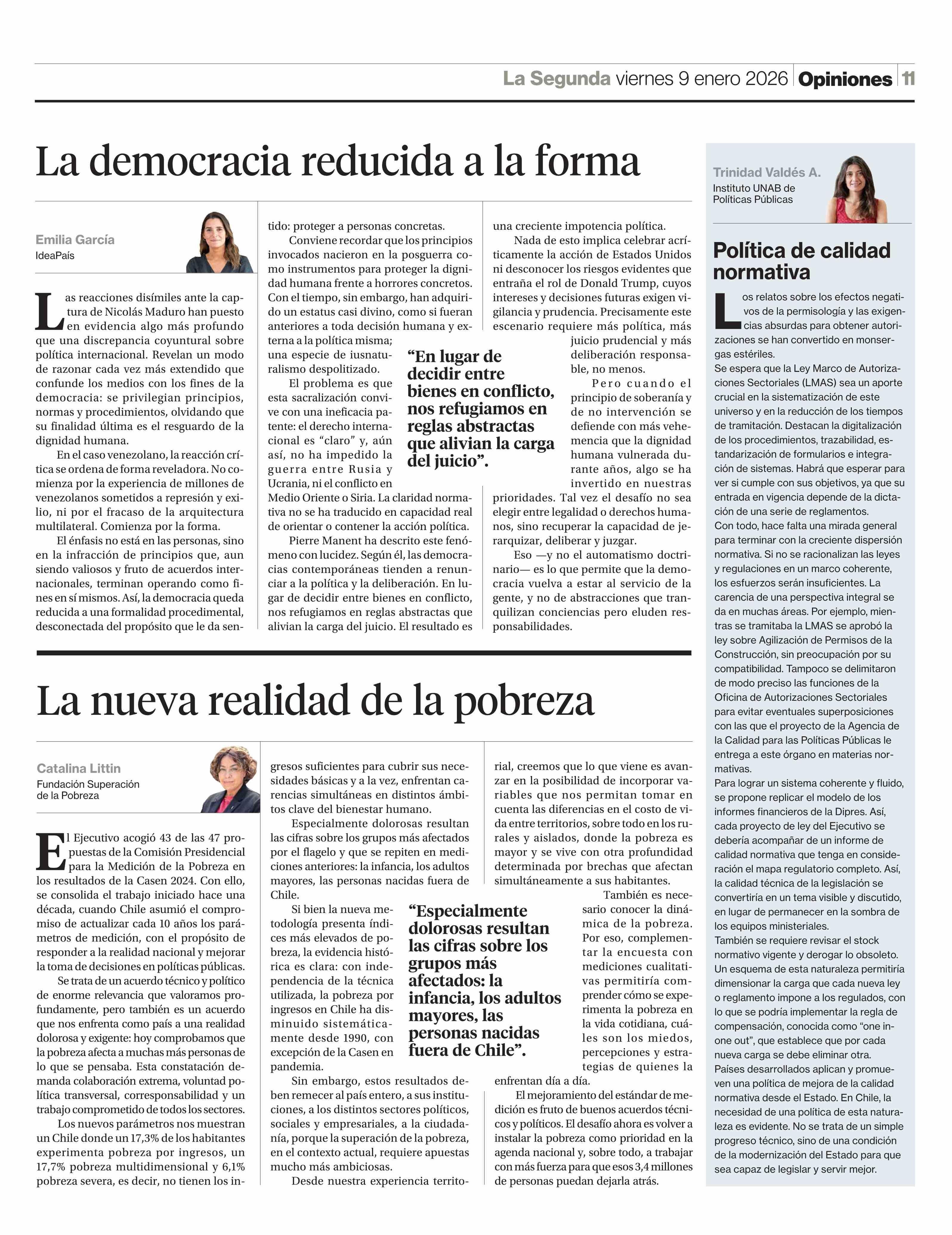 Columnas de Opinión: La nueva realidad de la pobreza 09-01-2026 La Segunda |