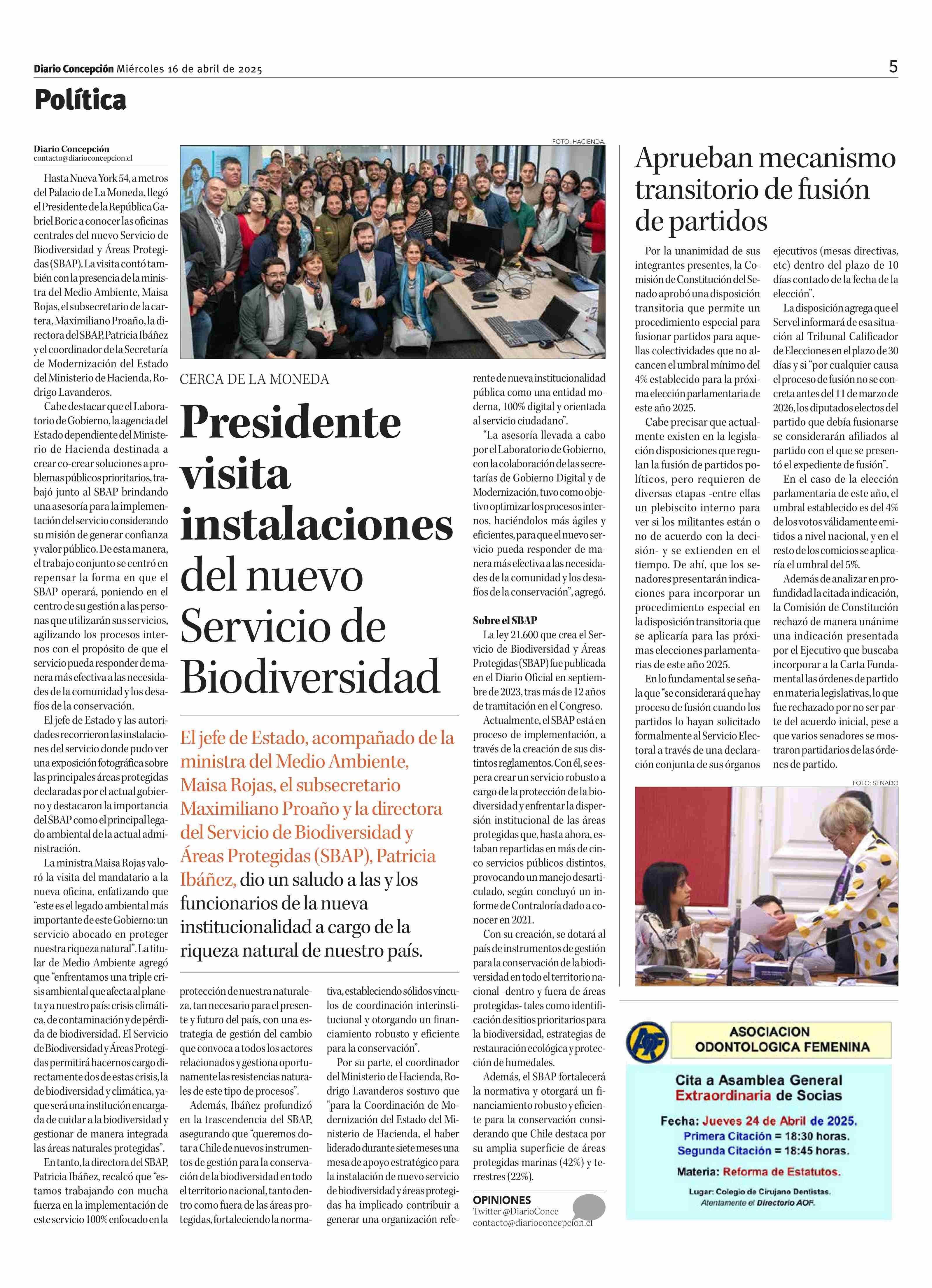 Presidente visita instalaciones del nuevo Servicio de Biodiversidad 16-04-2025 Diario Concepción |