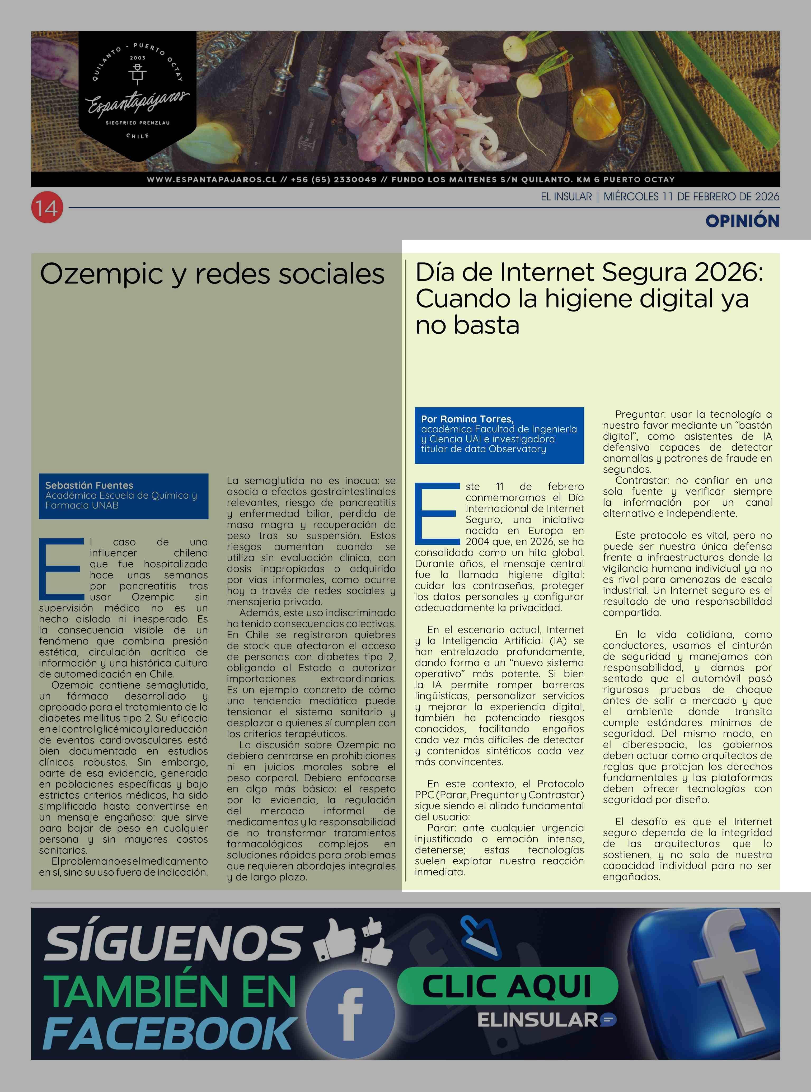 | Título: | COLUMNAS DE OPINIÓN: Día de Internet Segura 2026, Cuando la higiene digital ya no basta |