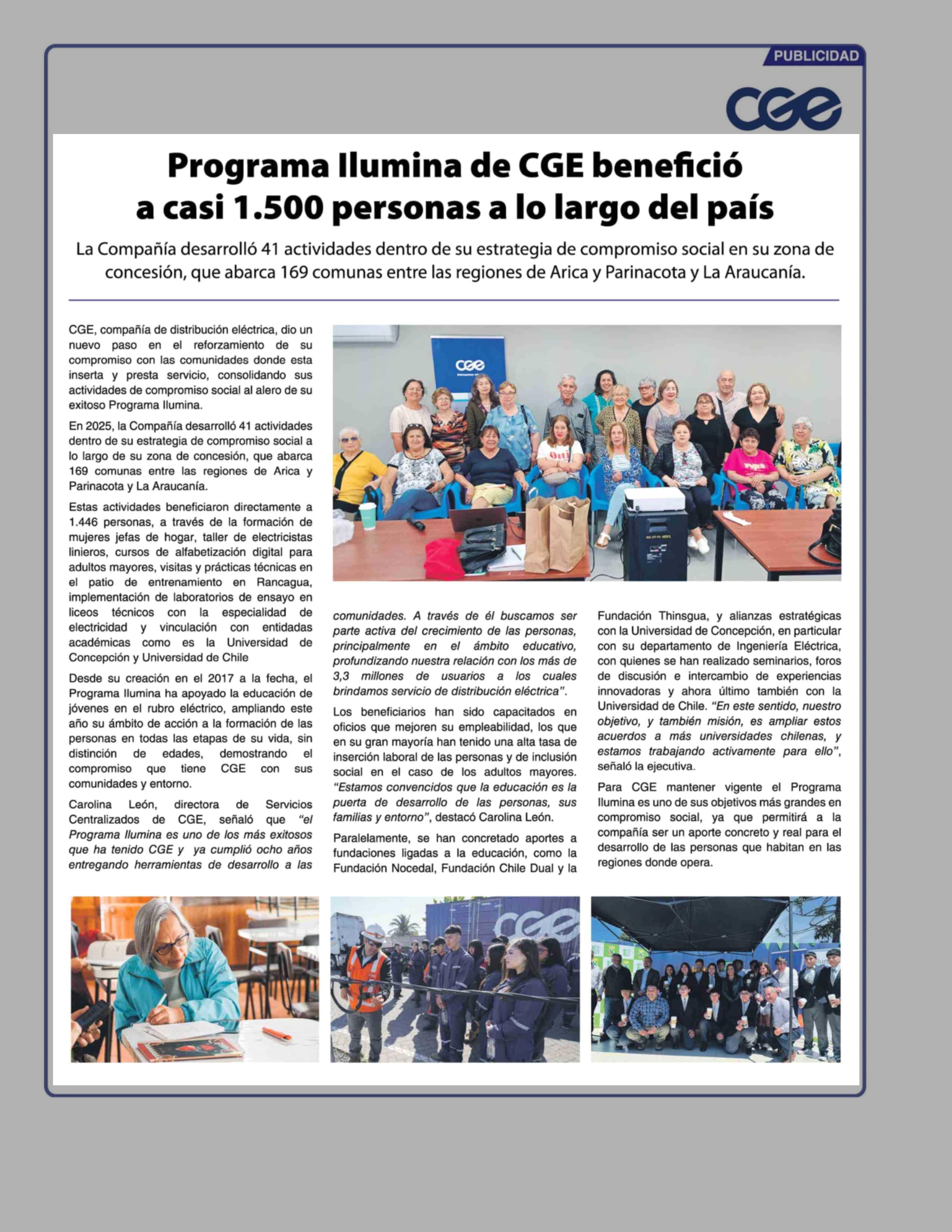Programa Ilumina de CGE beneficio a casi 1.500 personas a lo largo del país 13-03-2026 Las Últimas Noticias |