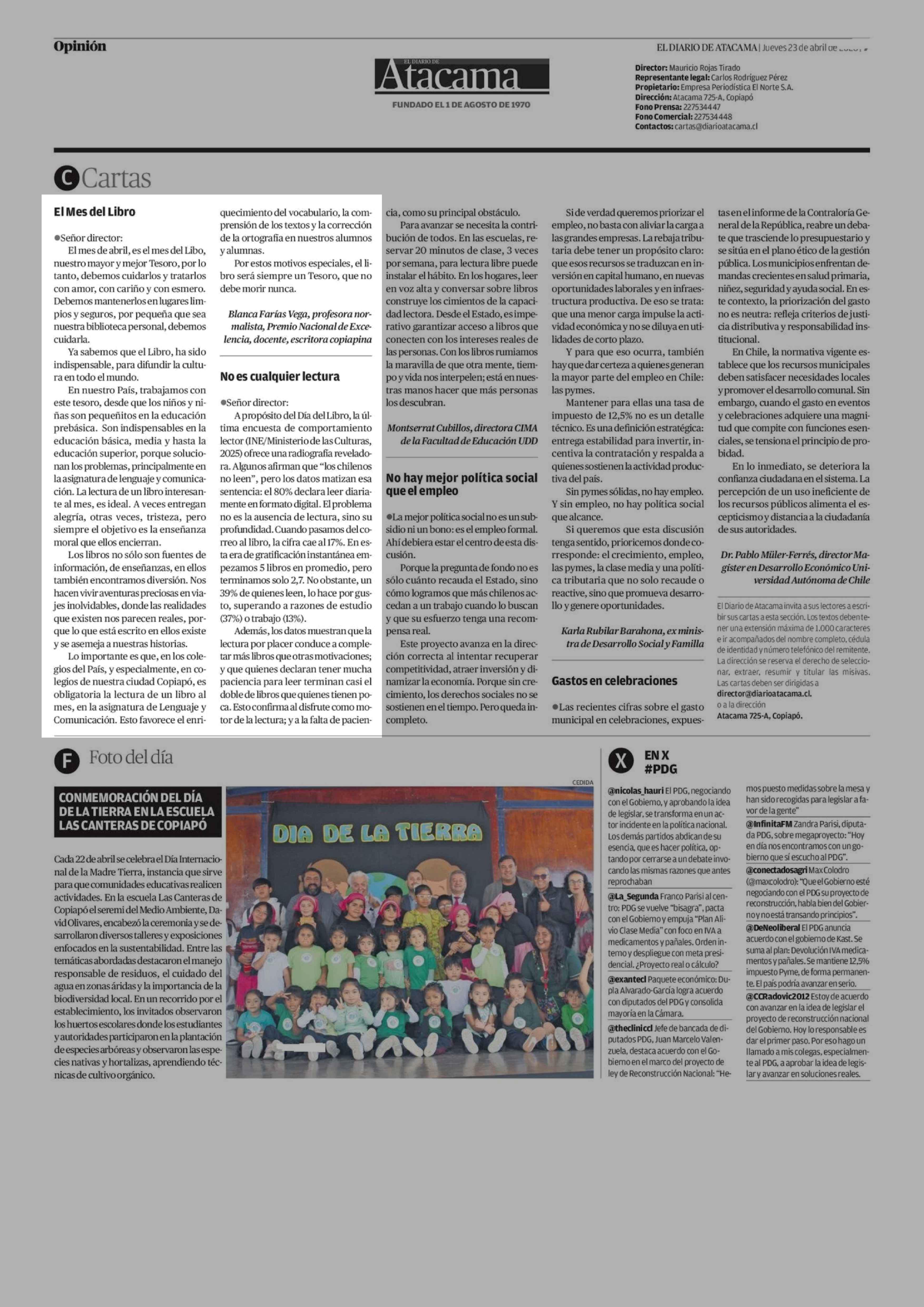 Cartas: El Mes del Libro 23-04-2026 El Diario de Atacama |