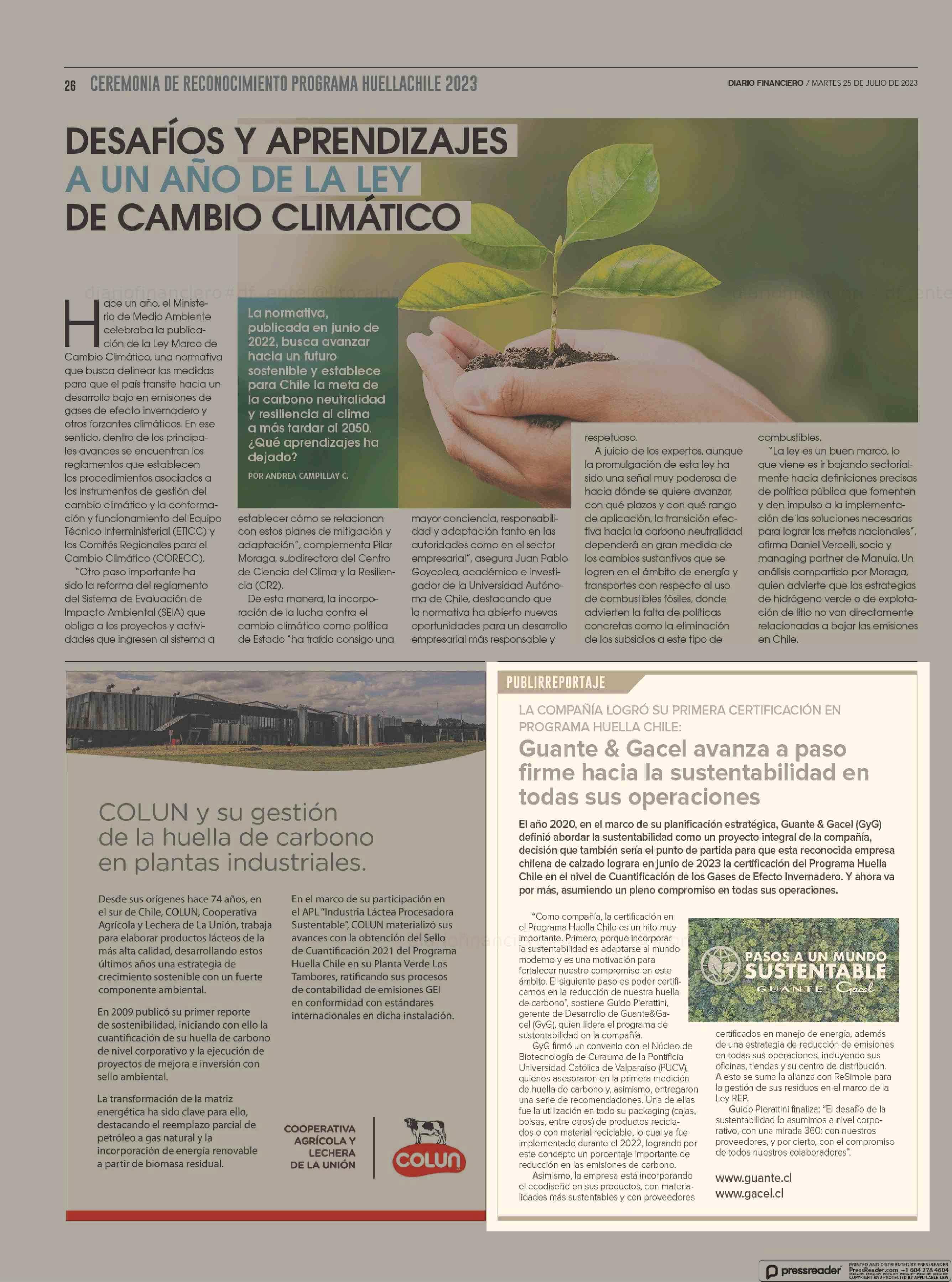Guante & Gacel avanza a paso firme hacia la sustentabilidad en todas sus operaciones 25-07-2023 Diario Financiero |