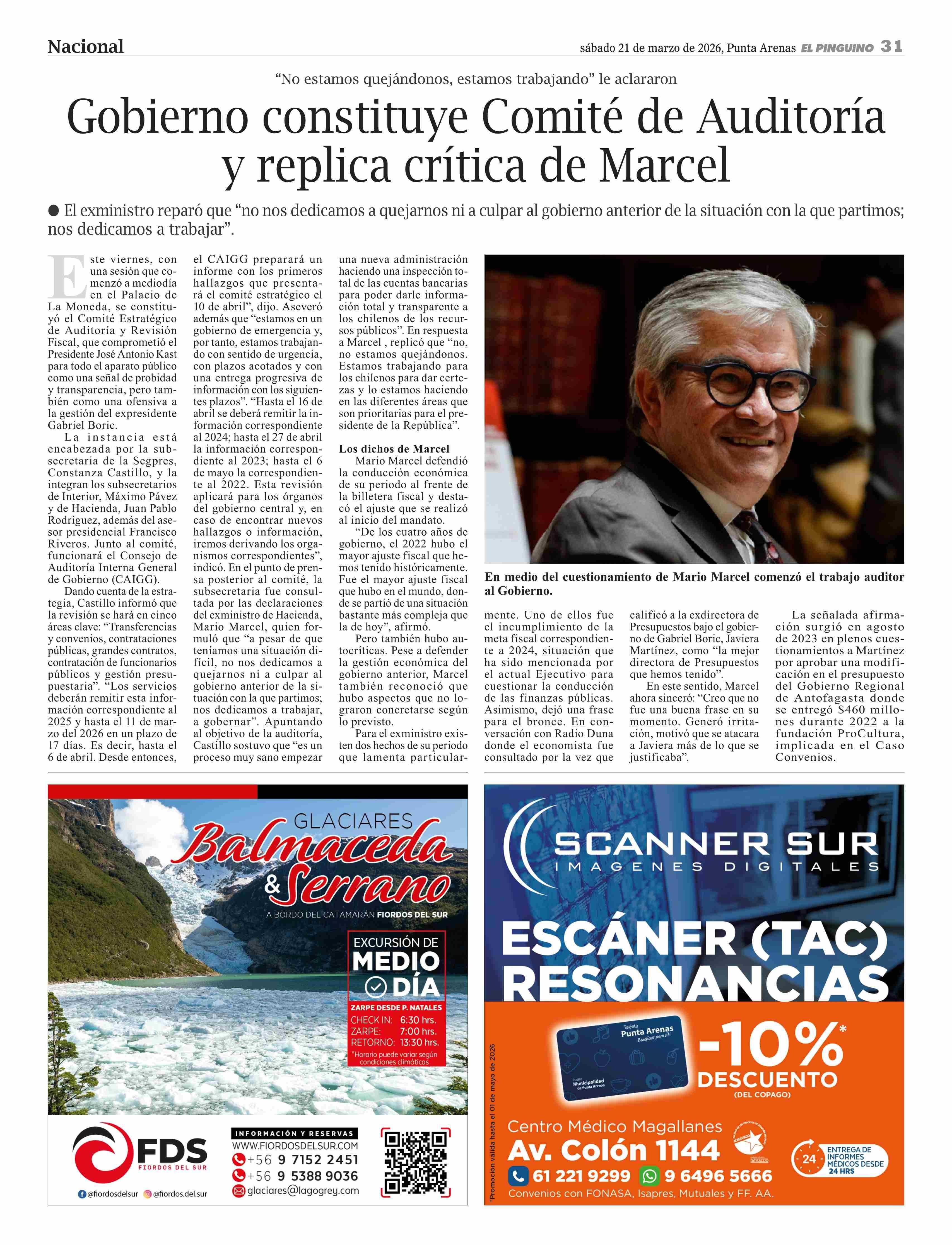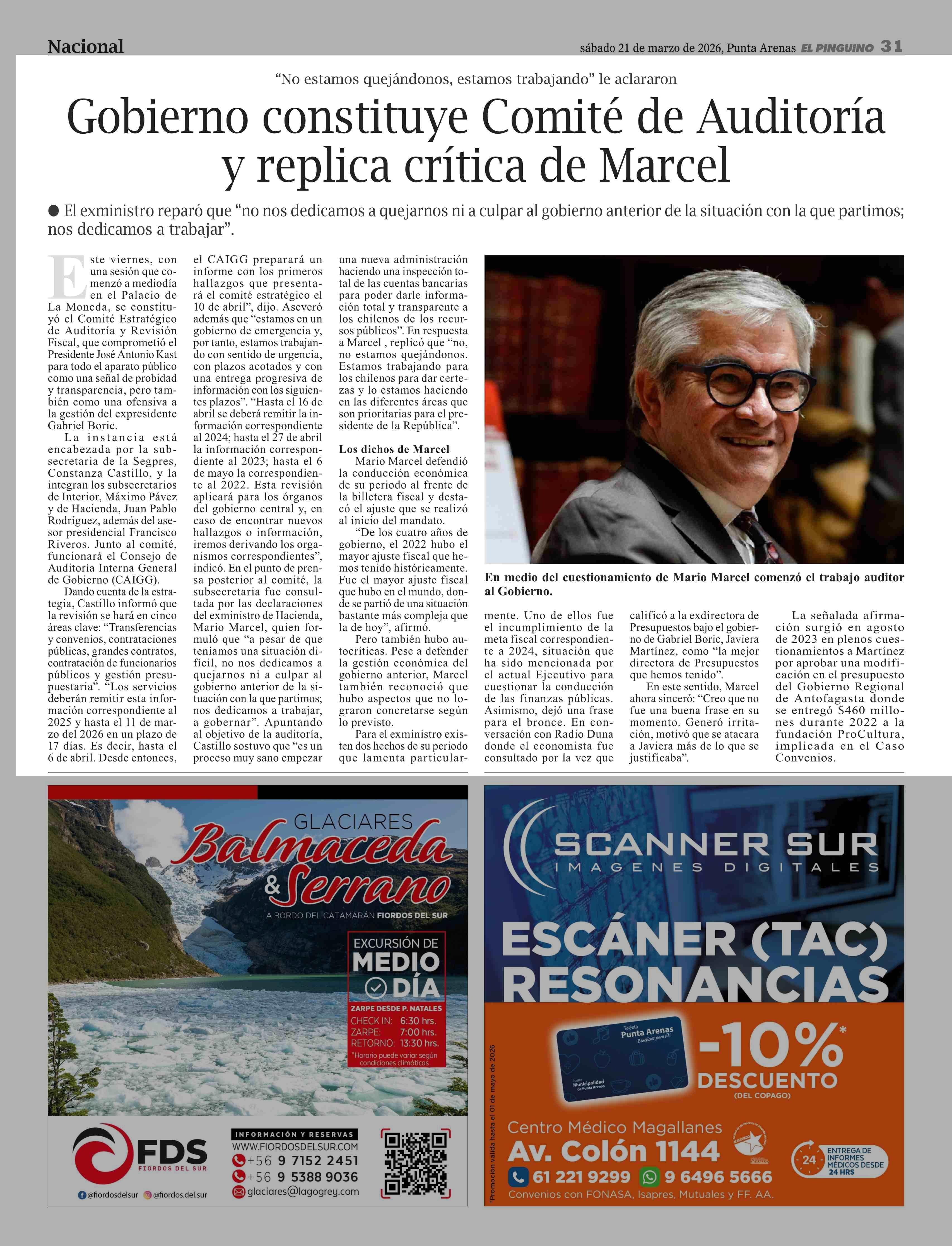 Título: Gobierno constituye Comité de Auditoría y replica crítica de Marcel