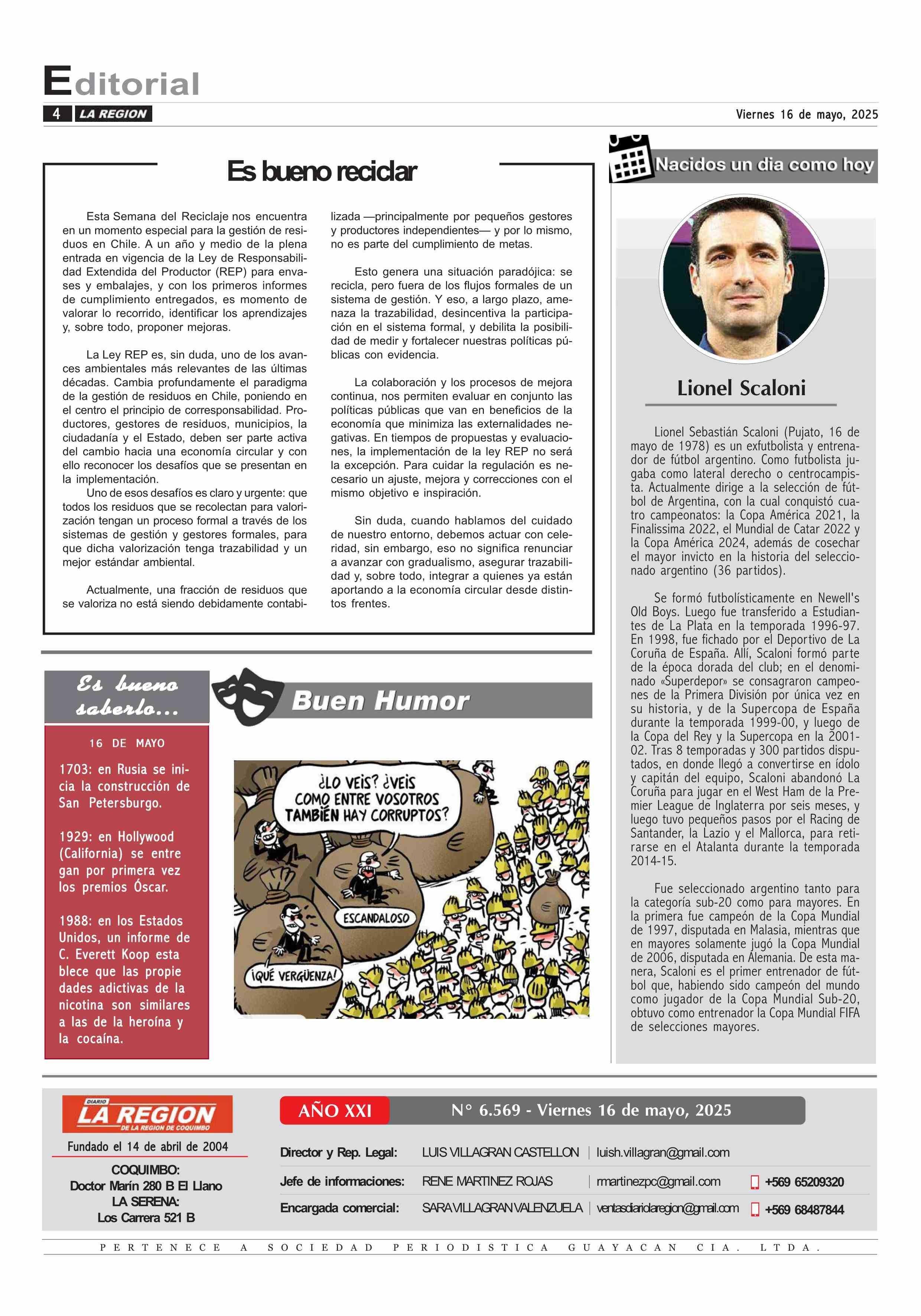 Editorial: Es bueno reciclar 16-05-2025 Diario la Región |