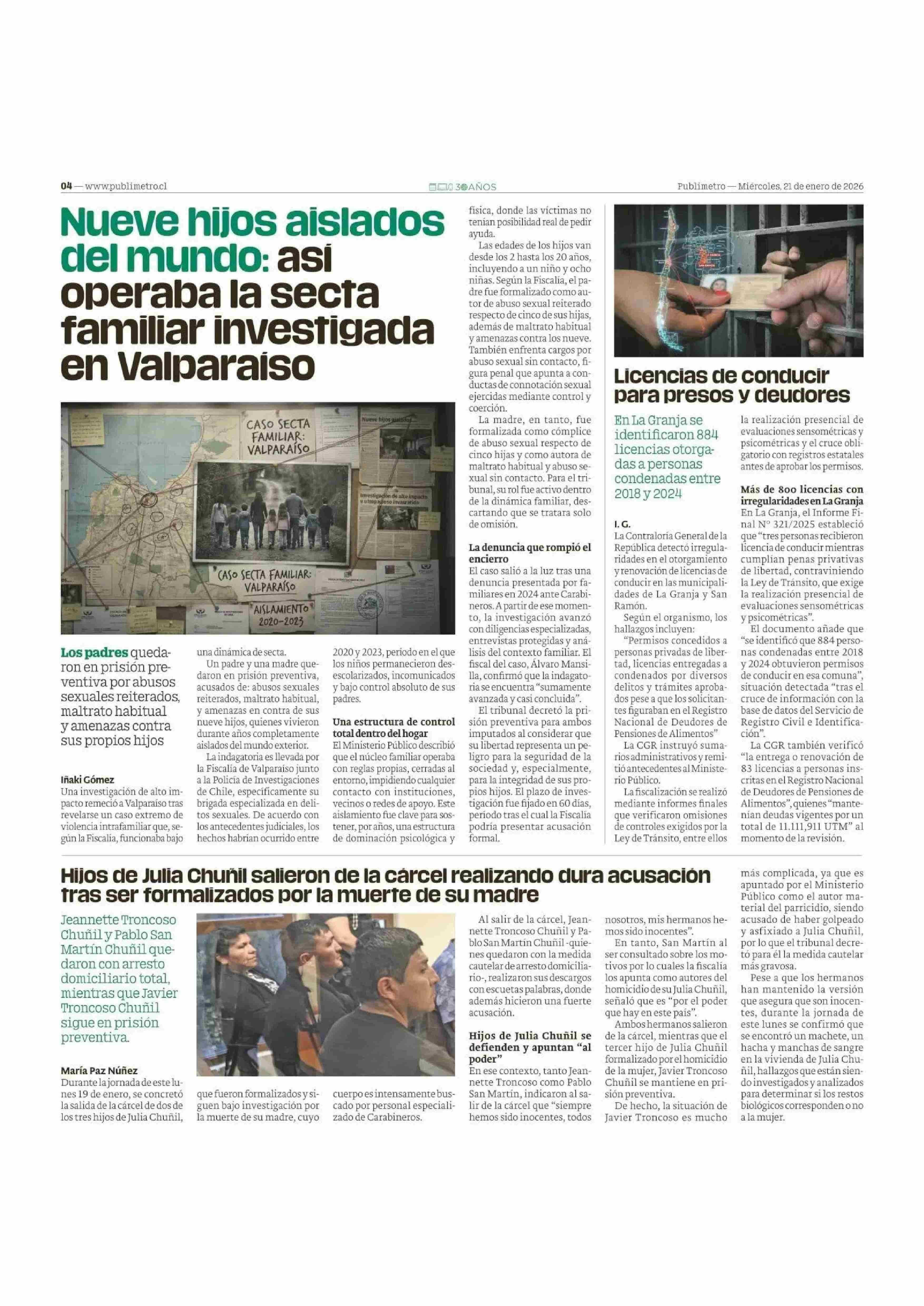 Nueve hijos aislados del mundo: asi operaba la secta familiar investigada en Valparaiso 21-01-2026 Publimetro |