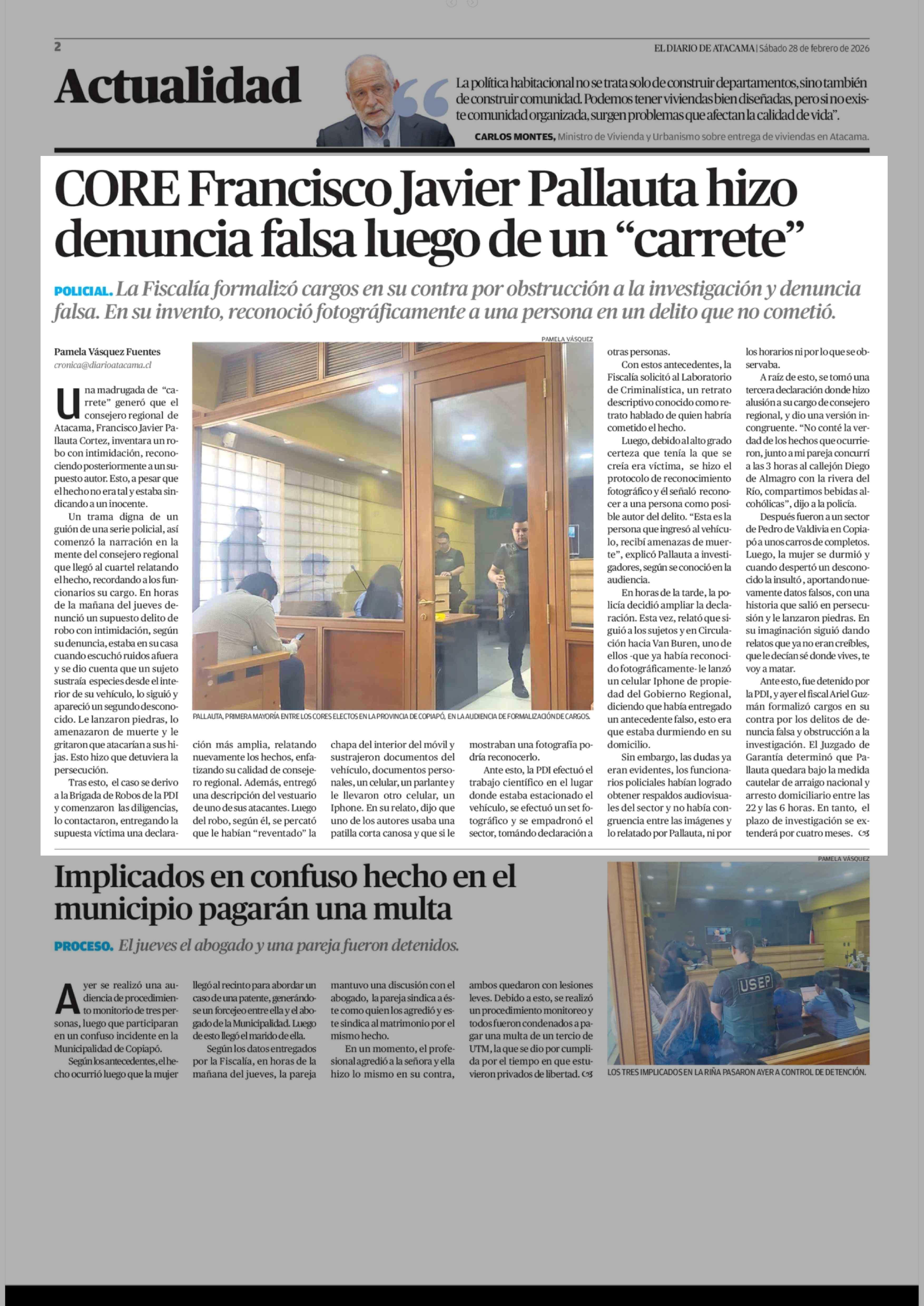 CORE Francisco Javier Pallauta hizo denuncia falsa luego de un "carrete" 28-02-2026 El Diario de Atacama |