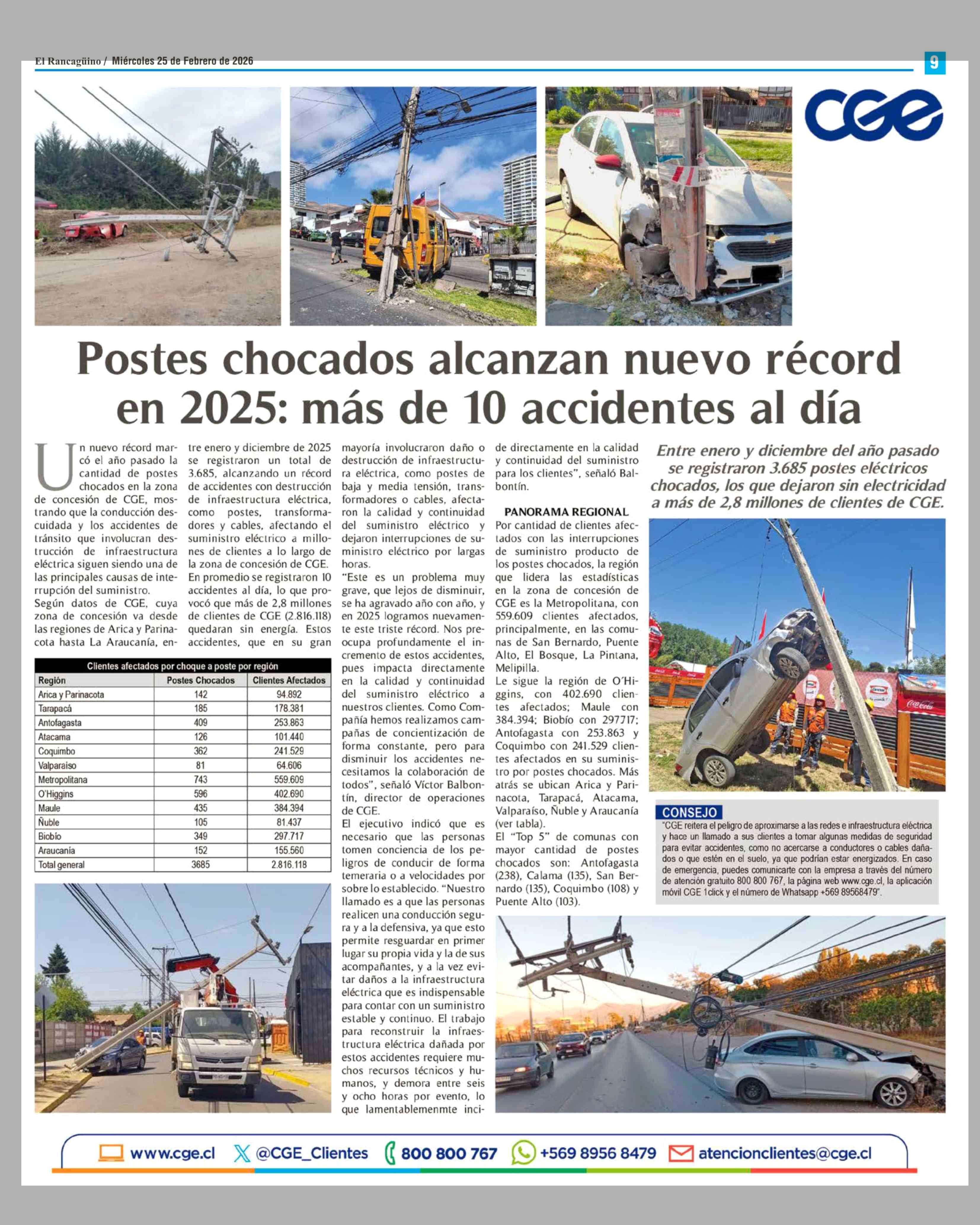 Título: Postes chocados alcanzan nuevo récord en 2025: más de 10 accidentes al día