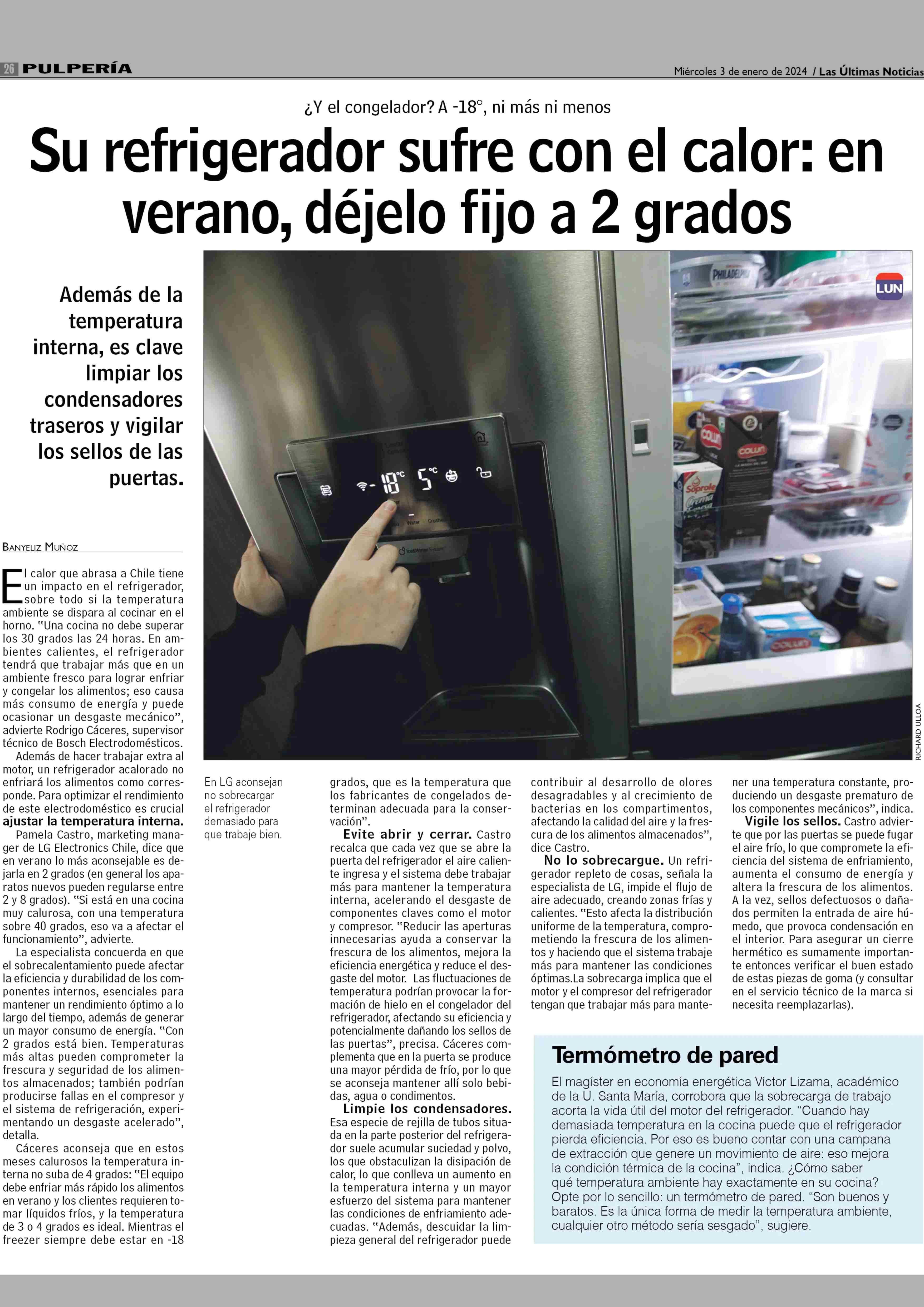 Título: Su refrigerador sufre con el calor: en verano, déjelo fijo a 2 grados