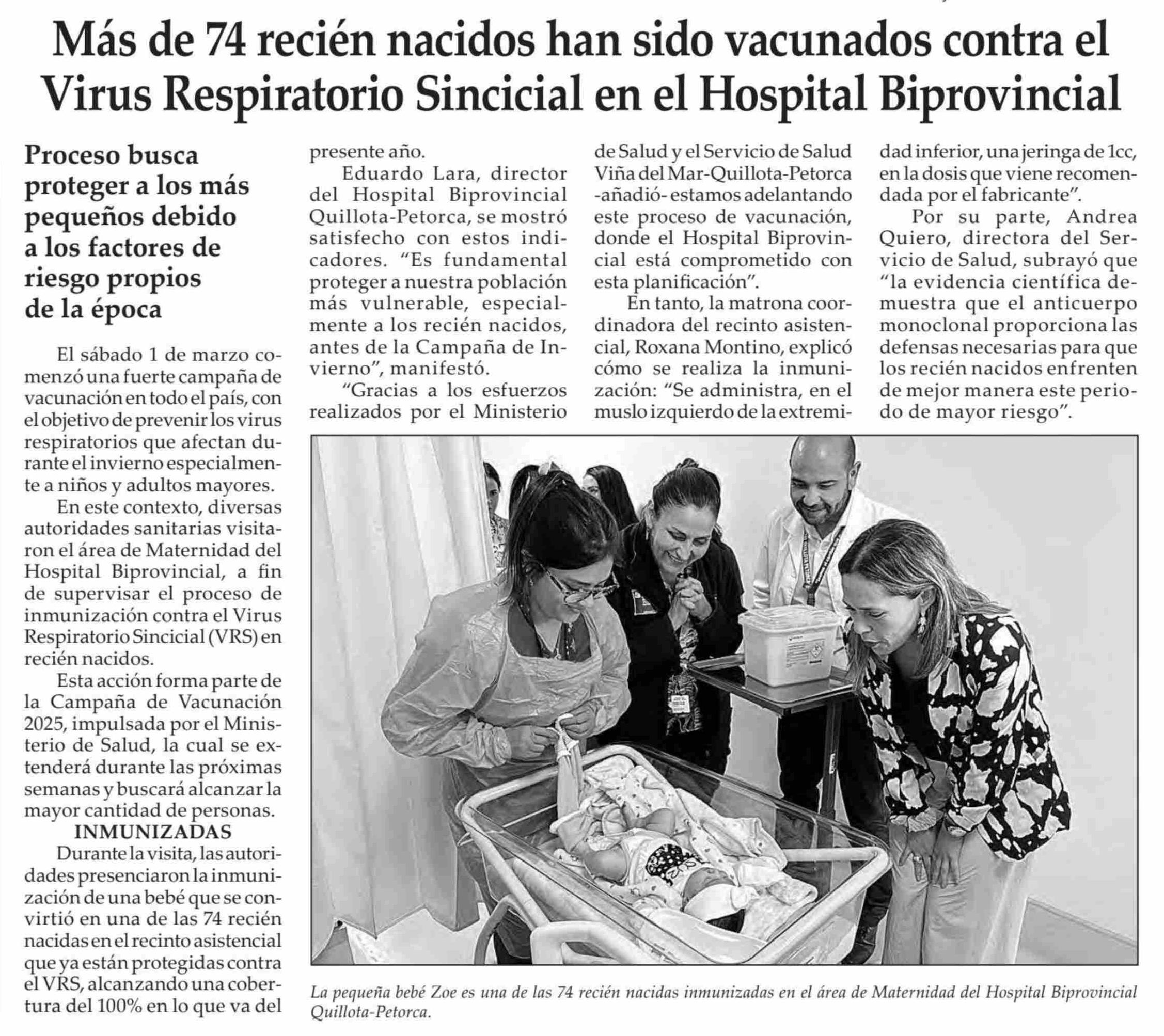 Más de 74 recién nacidos han sido vacunados contra el Virus Respiratorio Sincicial en el Hospital Biprovincial 28-03-2025 El Observador |