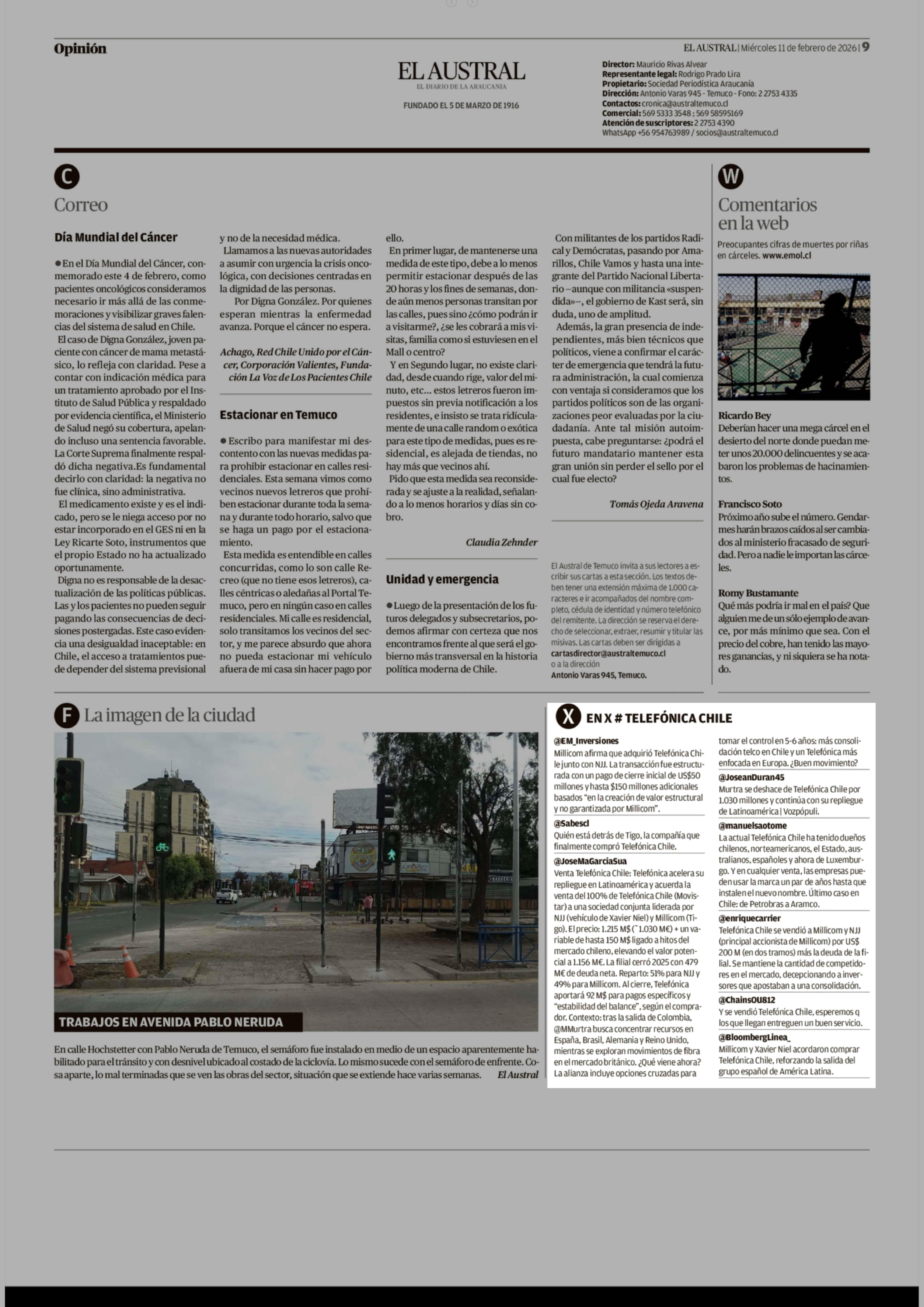 X # TELEFÓNICA CHILE 11-02-2026 El Austral de la Araucanía |