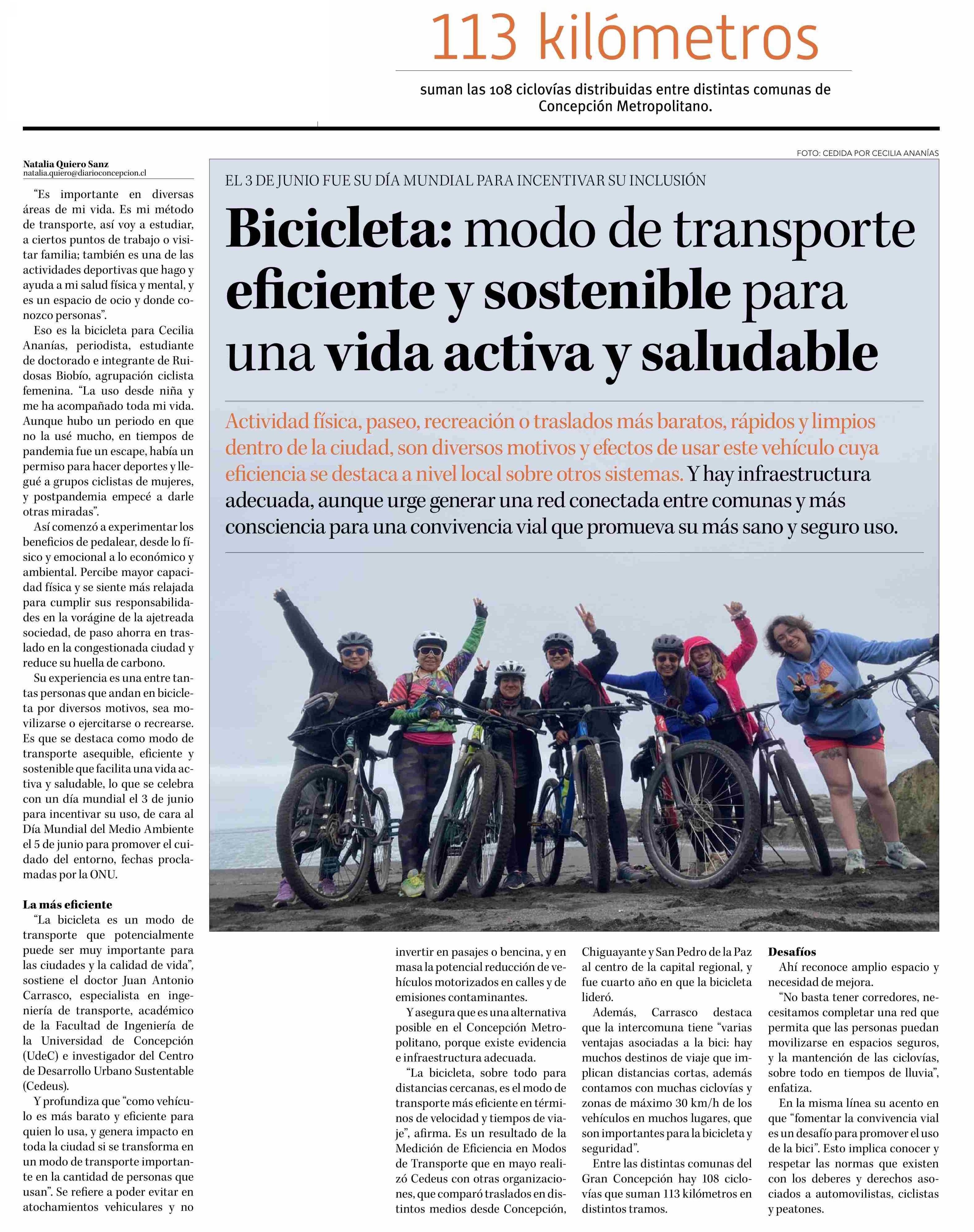 Bicicleta: modo de transporte eficiente y sostenible para una vida activa y saludable 08-06-2025 Diario Concepción |
