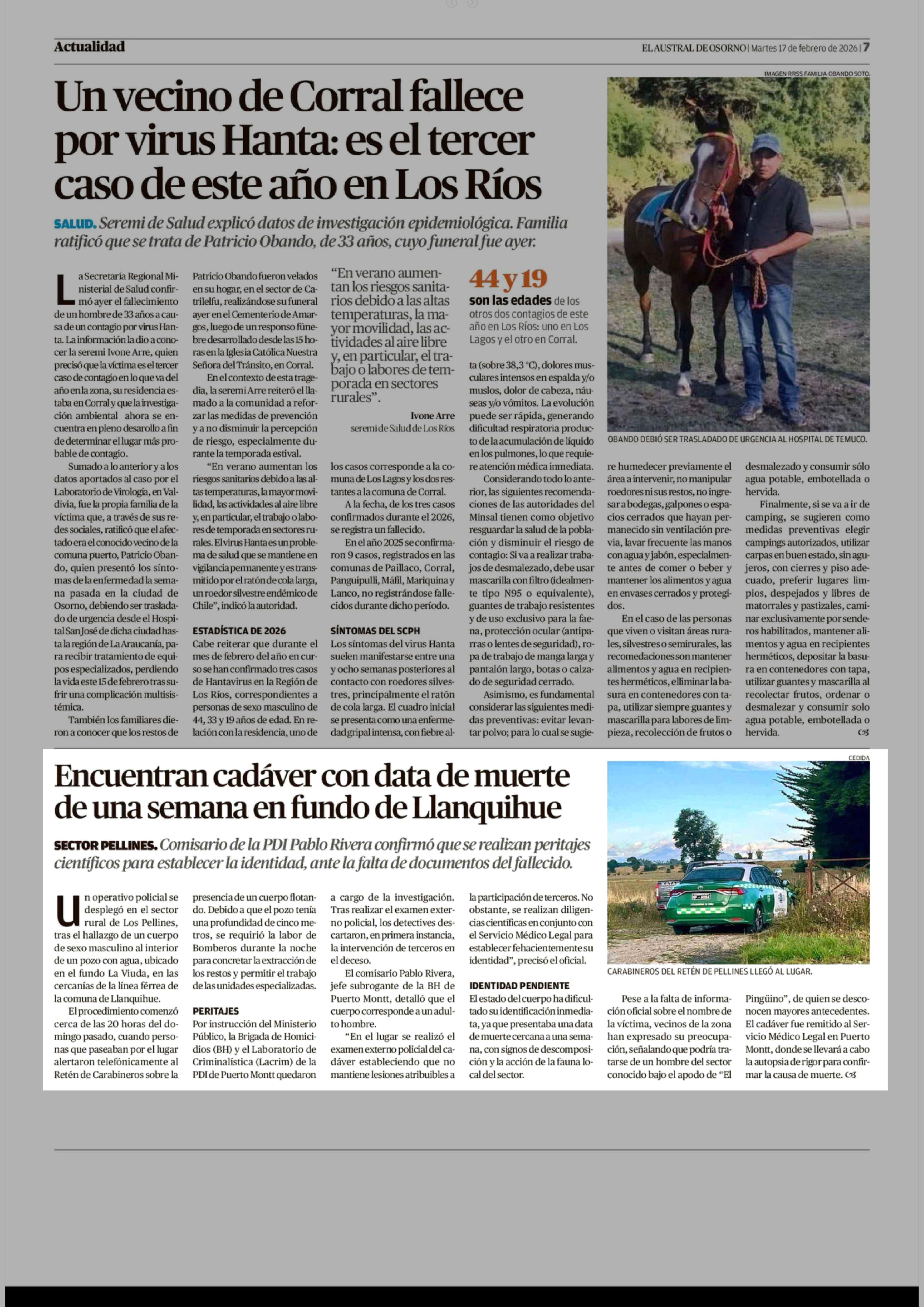 Encuentran cadáver con data de muerte de una semana en fundo de Llanquihue 17-02-2026 El Austral de Osorno |