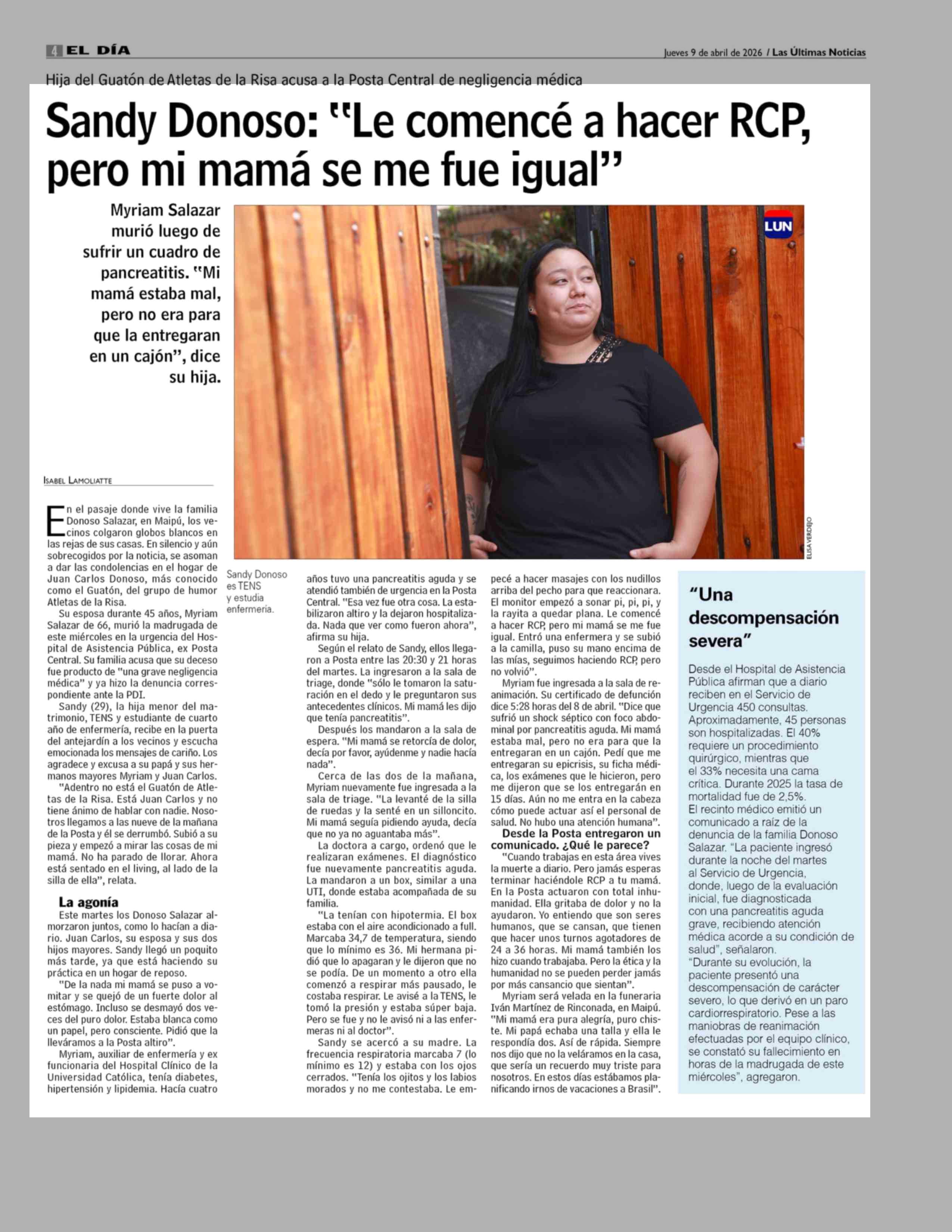Sandy Donoso: "Le comencé a hacer RCP, pero mi mamá se me fue igual" 09-04-2026 Las Últimas Noticias |