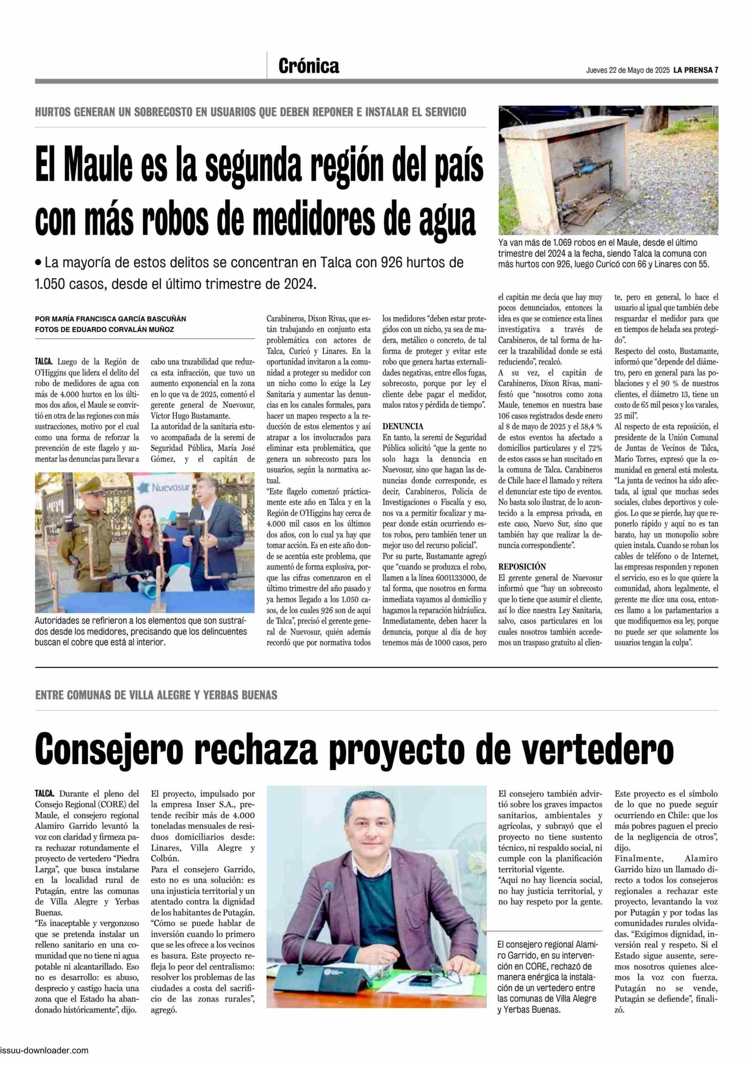 Consejero rechaza proyecto de vertedero 22-05-2025 La Prensa de Curicó |