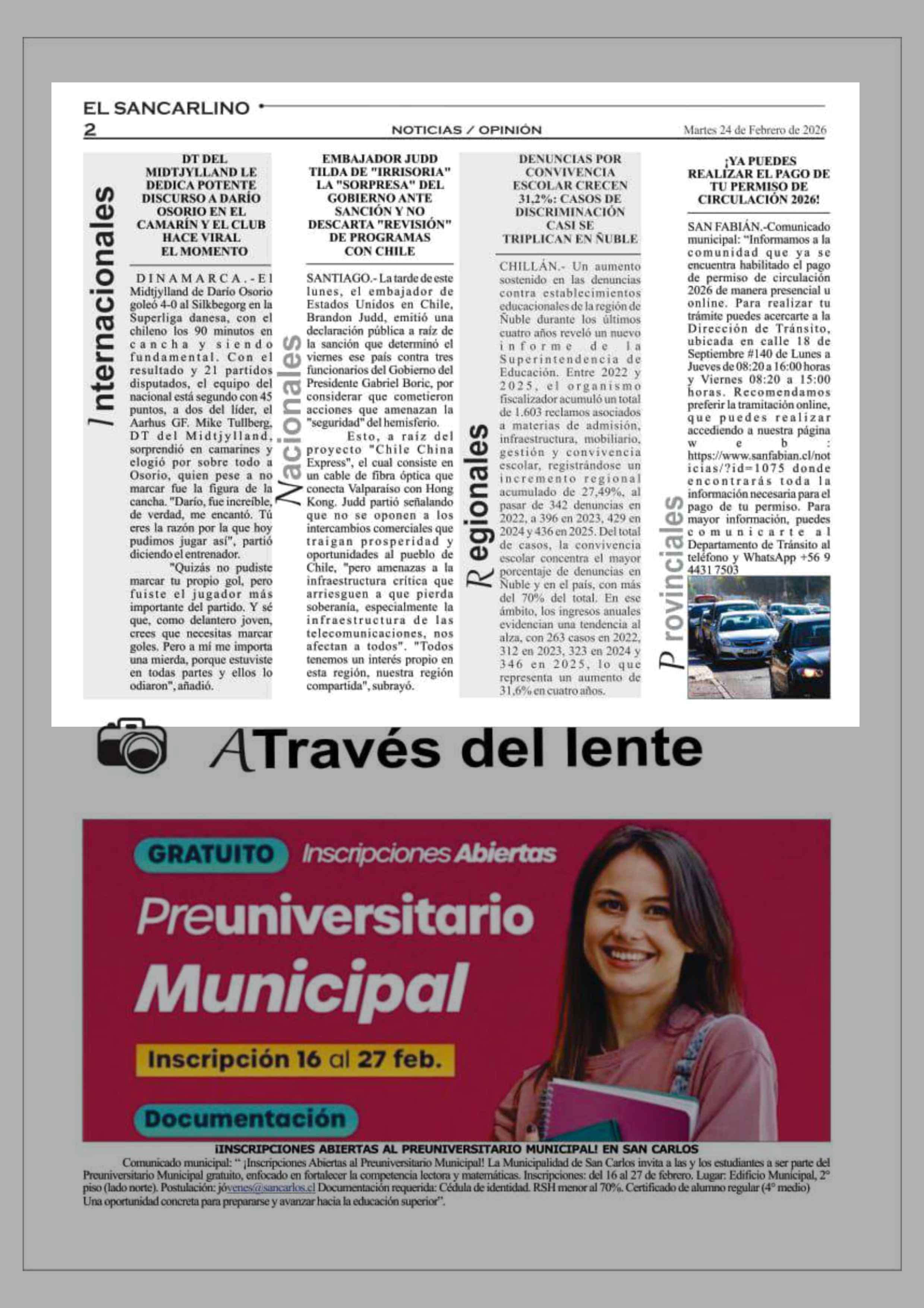 | Fecha: | 24-02-2026 | Sector: | Noticia general | Región: | Región del Ñuble |