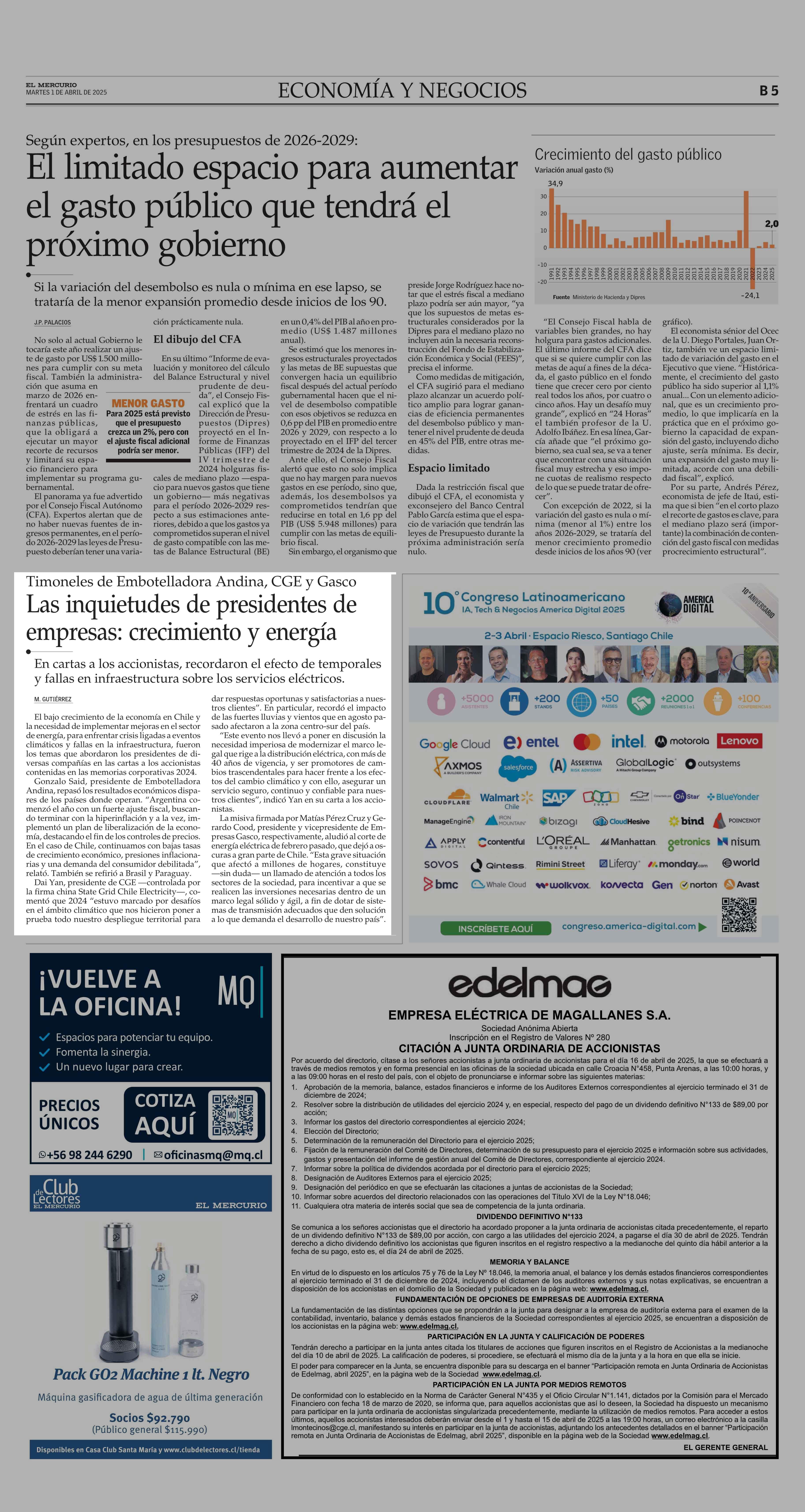 Las inquietudes de presidentes de empresas: crecimiento y energía 01-04-2025 El Mercurio |