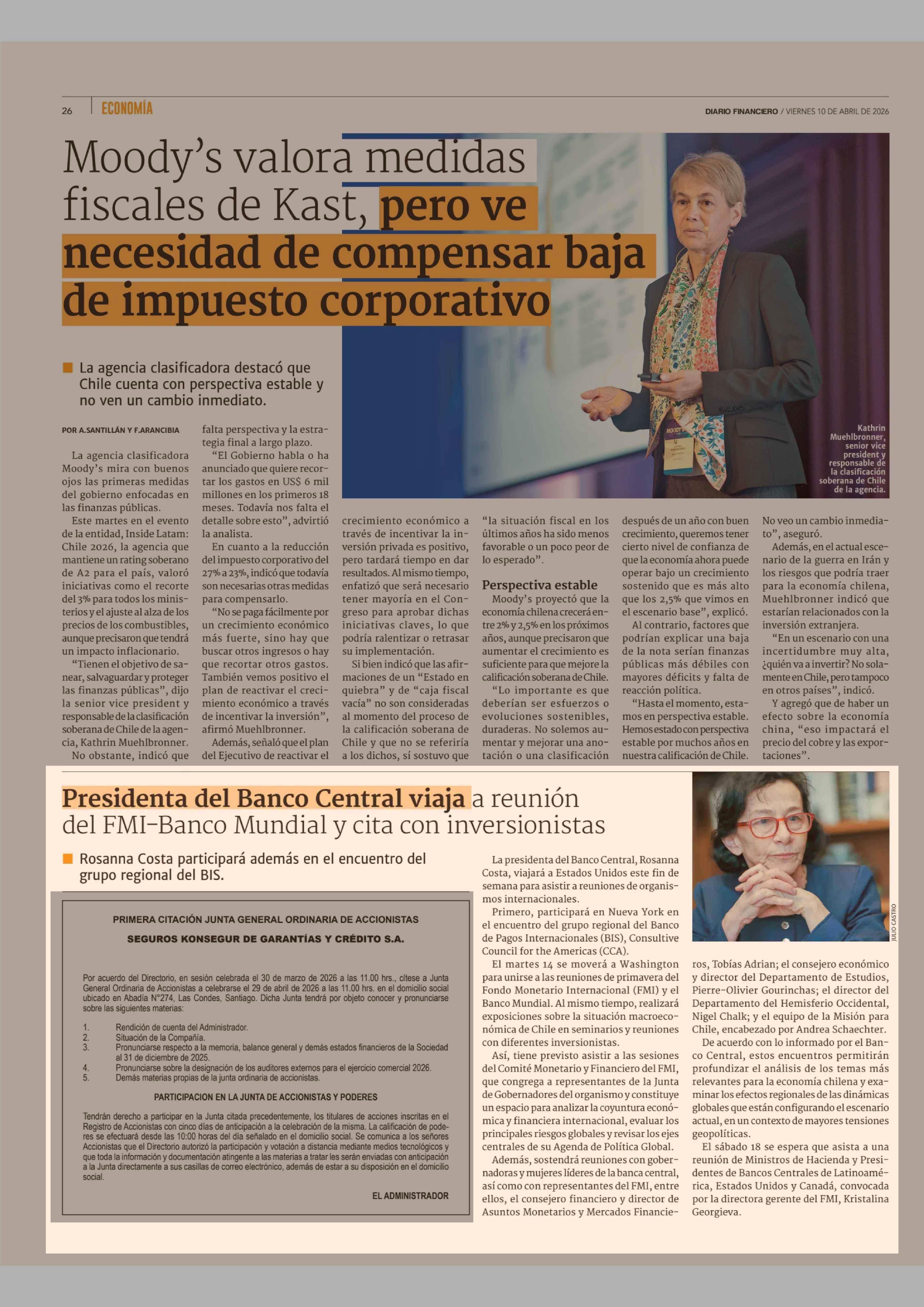 Presidenta del Banco Central viaja a reunión del FMI-Banco Mundial y cita con inversionistas 10-04-2026 Diario Financiero |