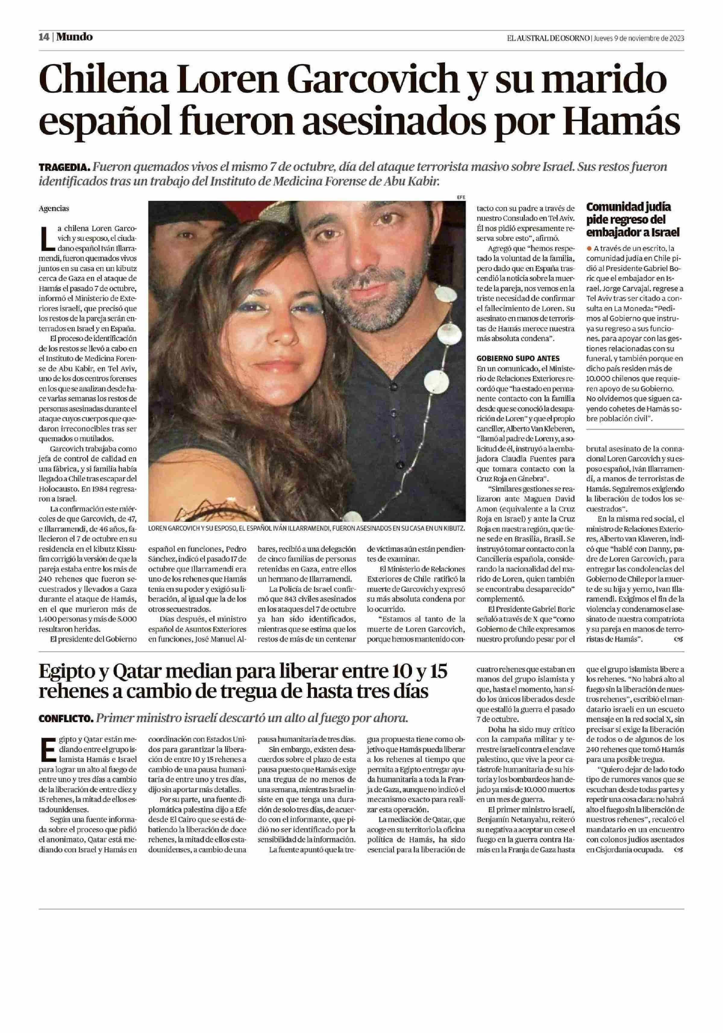 Título: Chilena Loren Garcovich y su marido español fueron asesinados por Hamás