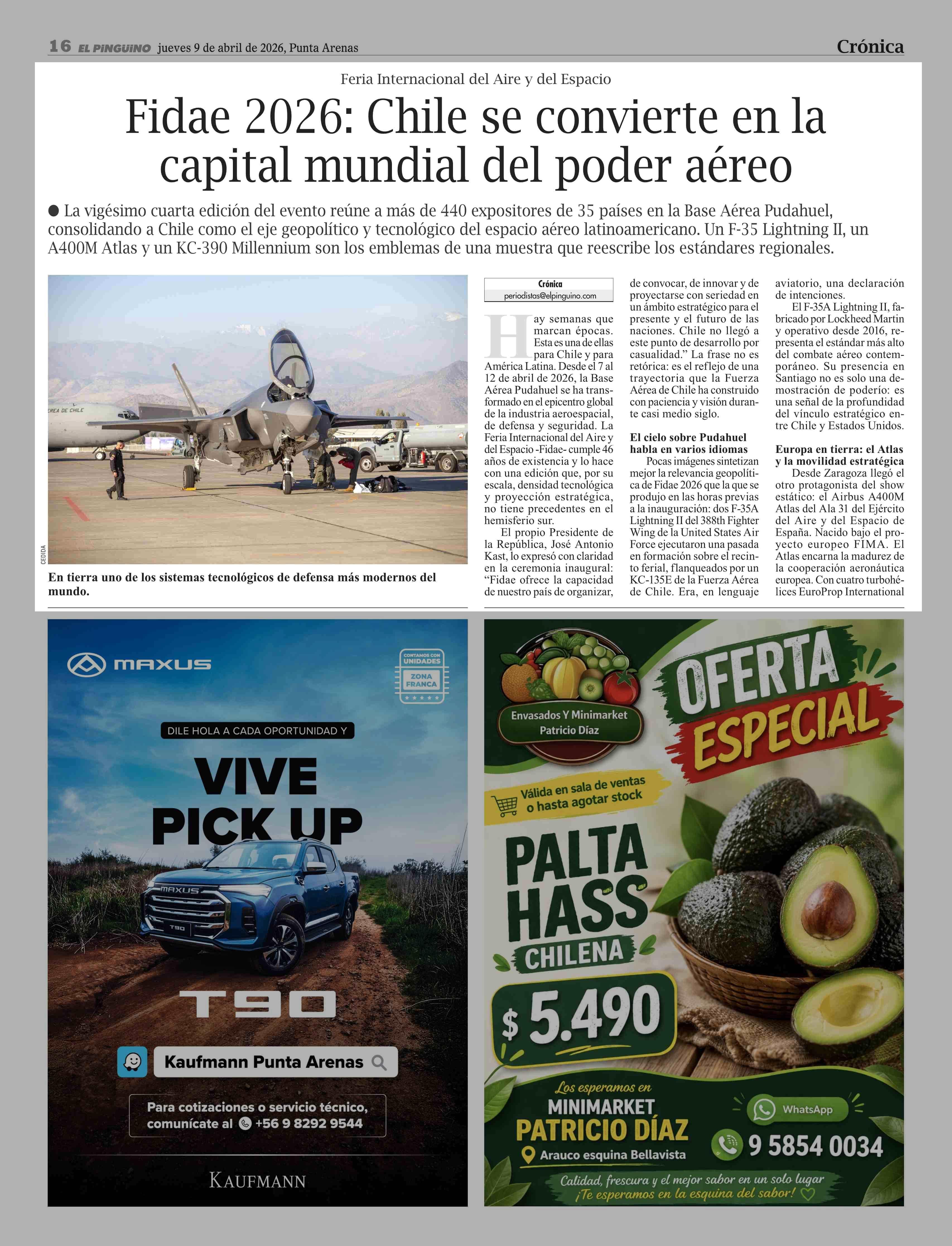 Fidae 2026: Chile se convierte en la capital mundial del poder aéreo 09-04-2026 El Pingüino |
