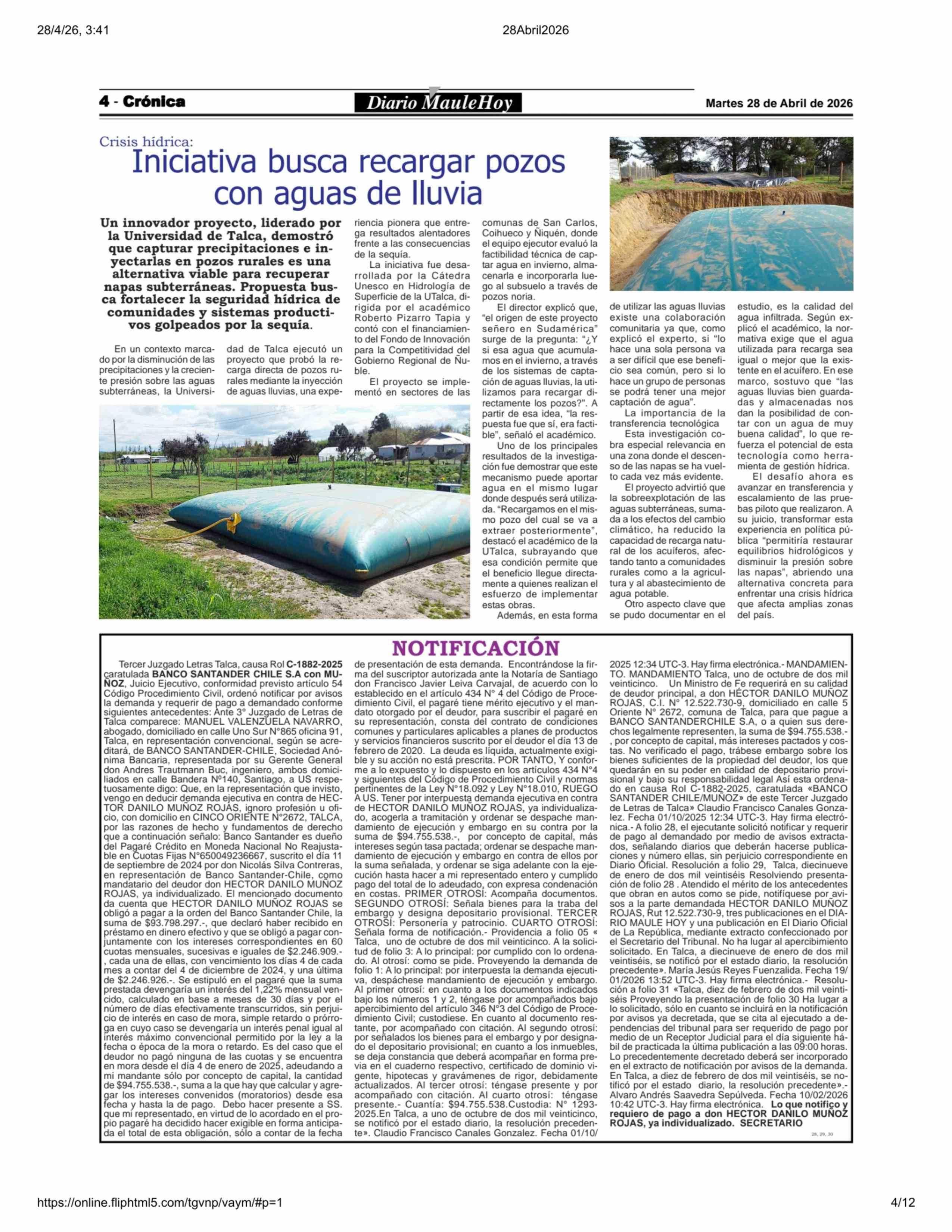 Iniciativa busca recargar pozos con aguas de lluvia 28-04-2026 Maule Hoy |