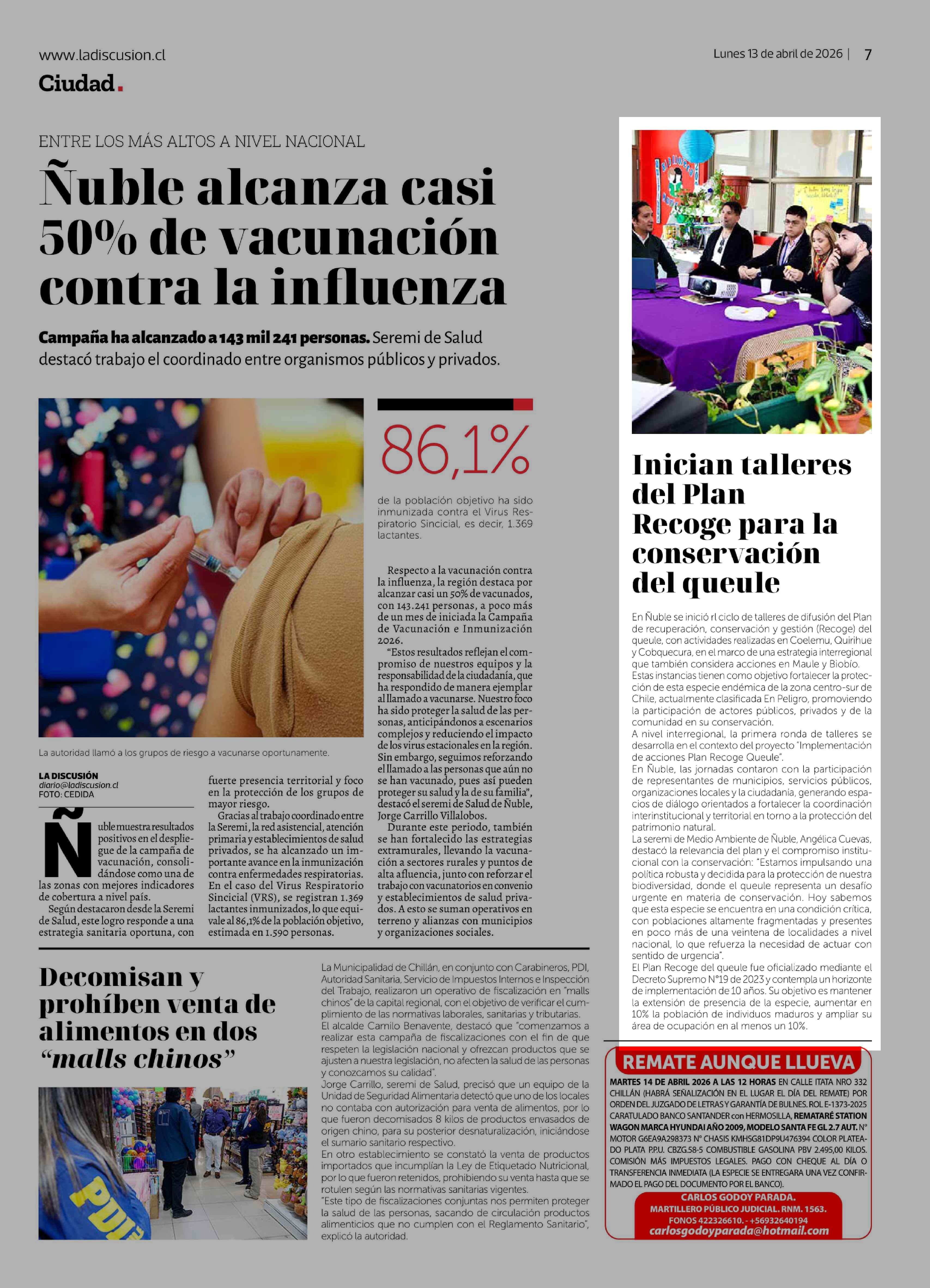 | Fecha: | 13-04-2026 | Sector: | Noticia general | Región: | Región del Ñuble |