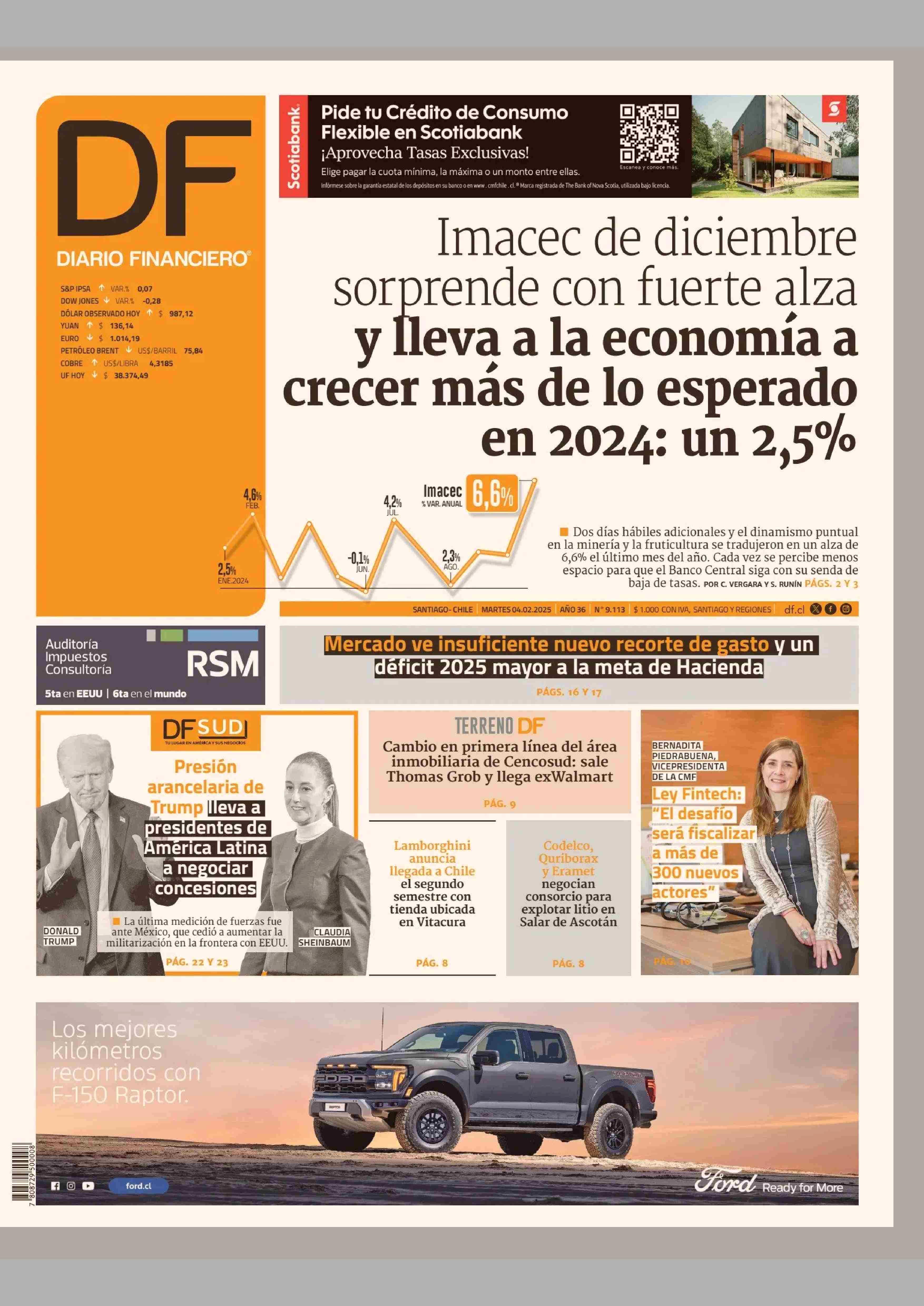 PORTADA DIARIO FINANCIERO - CHILE 04-02-2025 Diario Financiero |