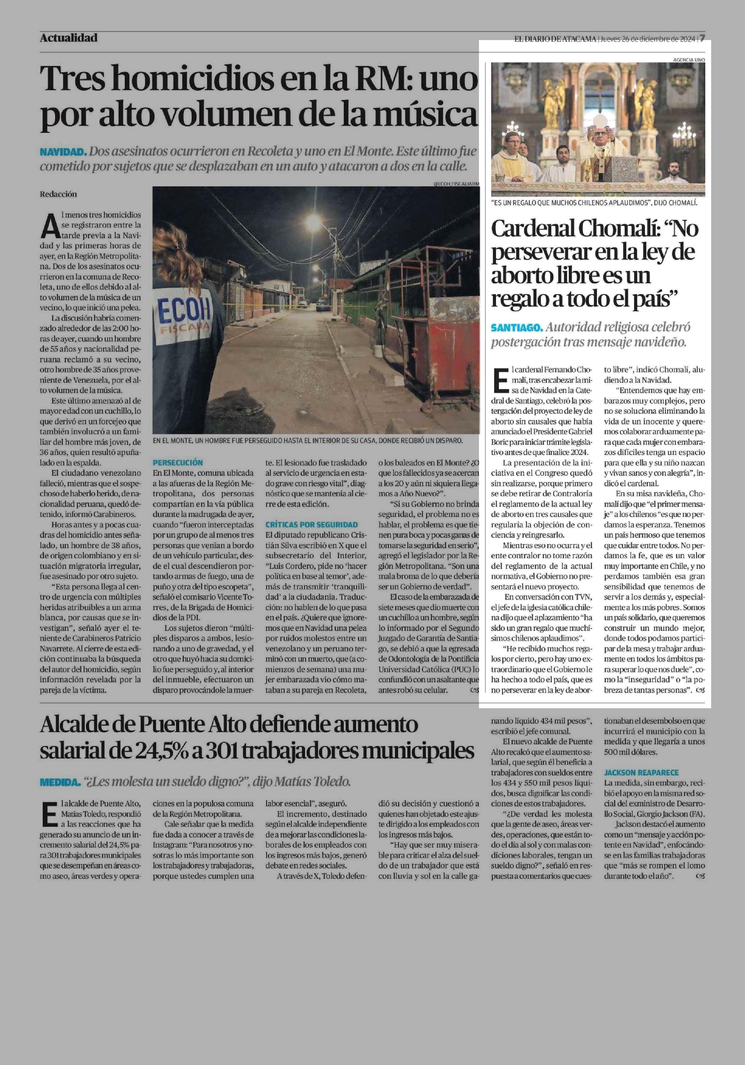 Cardenal Chomalí: No perseverar en la ley de aborto libre es un regalo a todo el país” 26-12-2024 El Diario de Atacama |