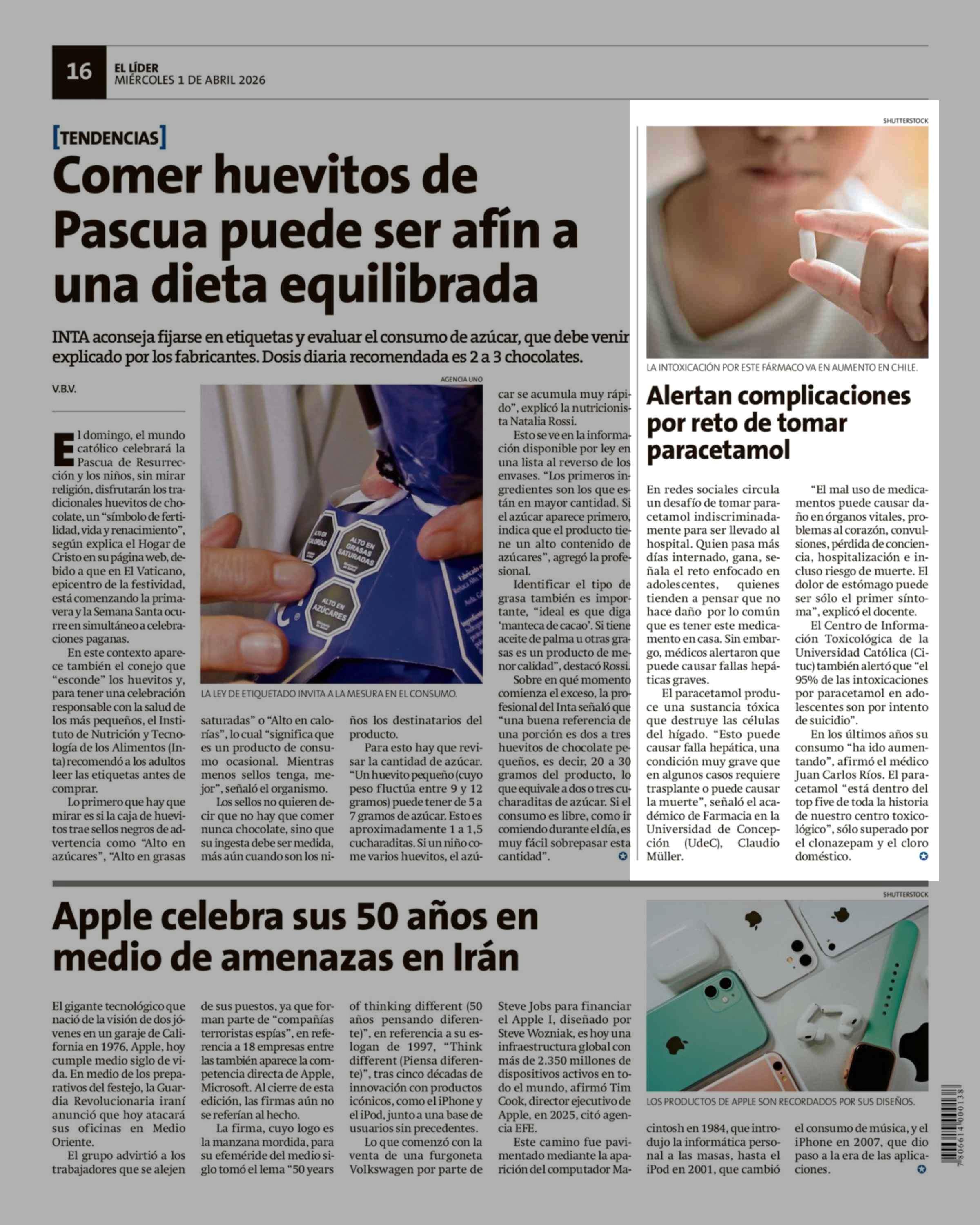 Alertan complicaciones por reto de tomar paracetamol 01-04-2026 El Líder |