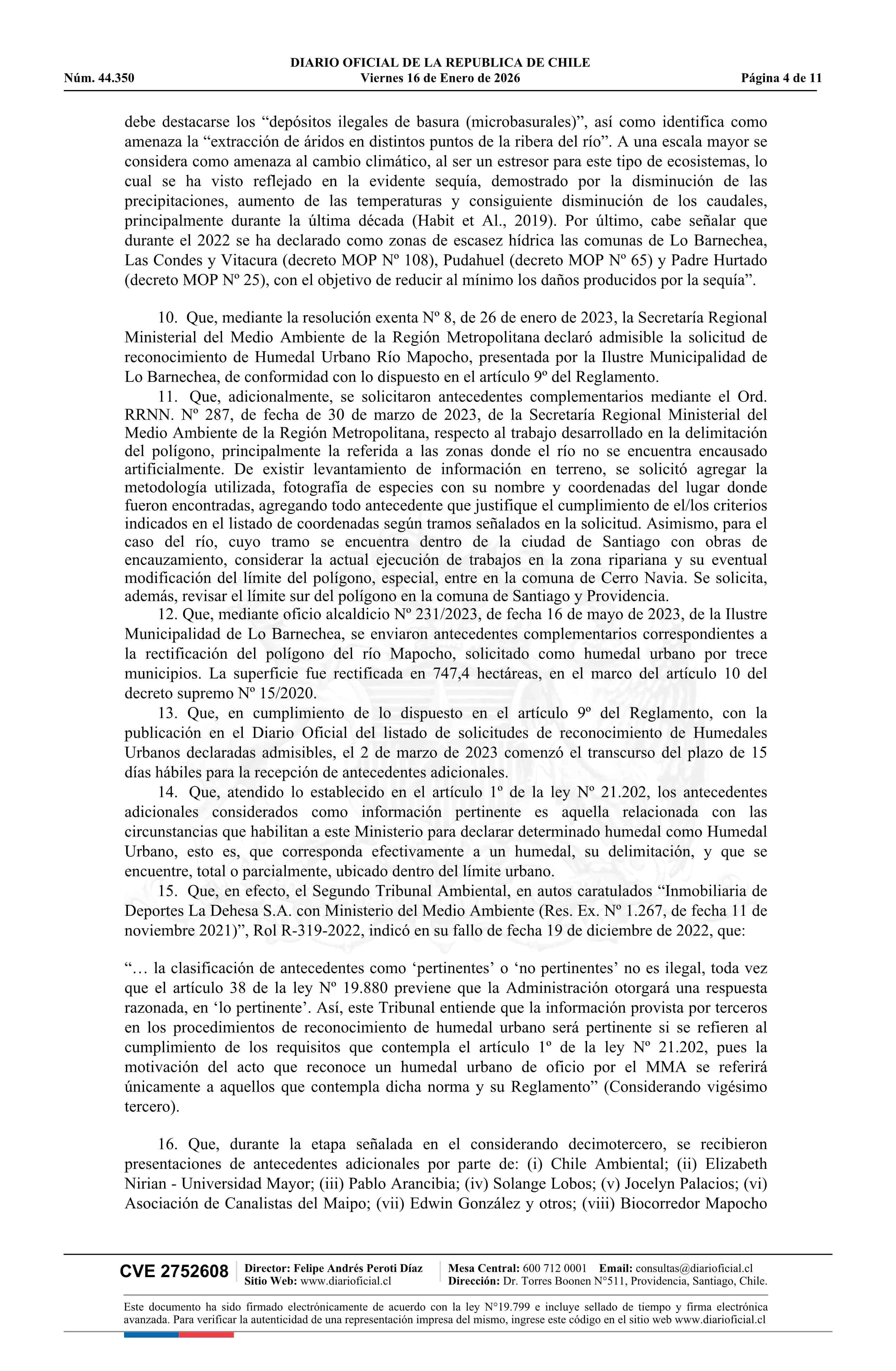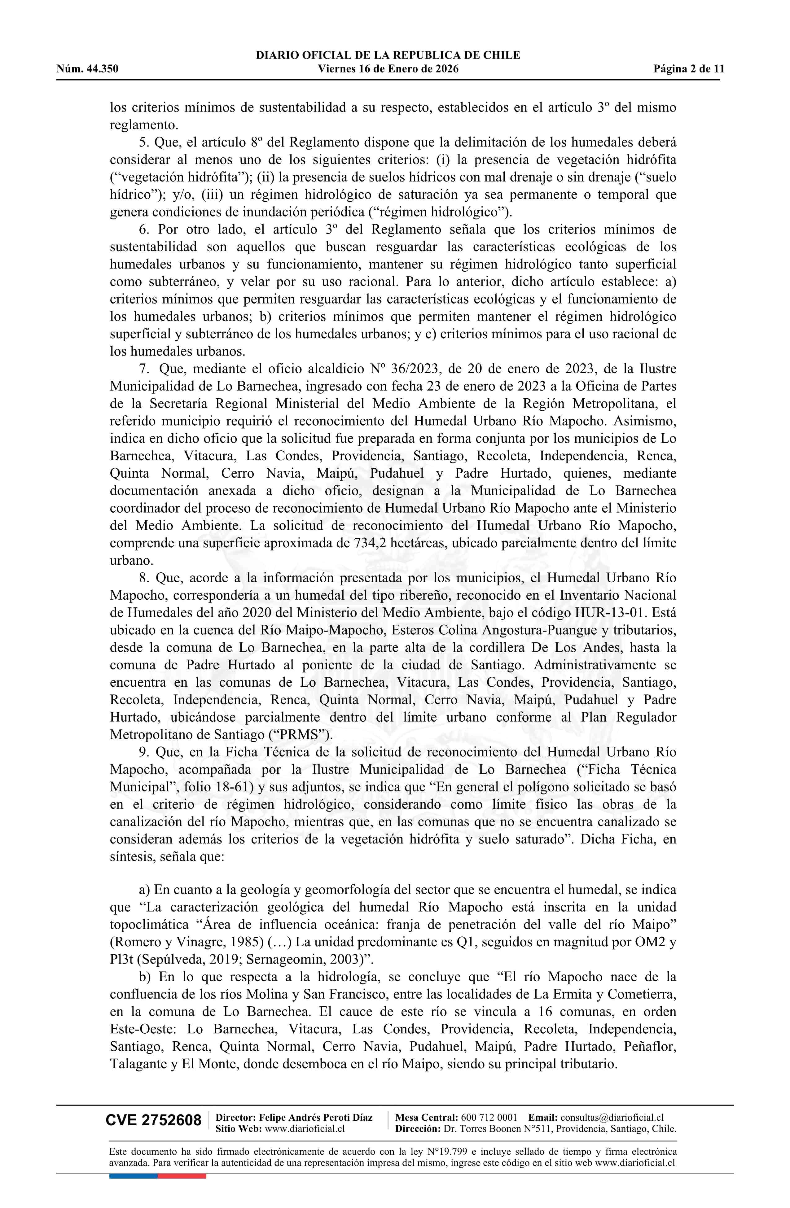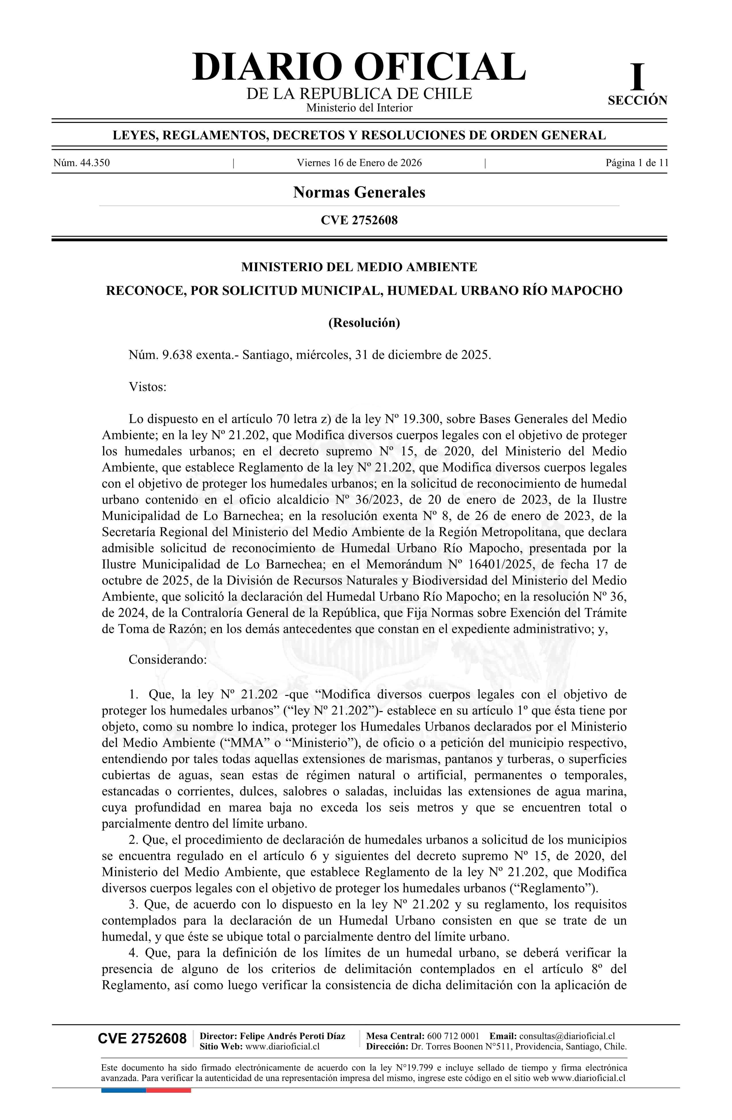 Título: Resolución exenta número 9.638, de 2025.- Reconoce, por solicitud municipal, Humedal Urbano Río Mapocho