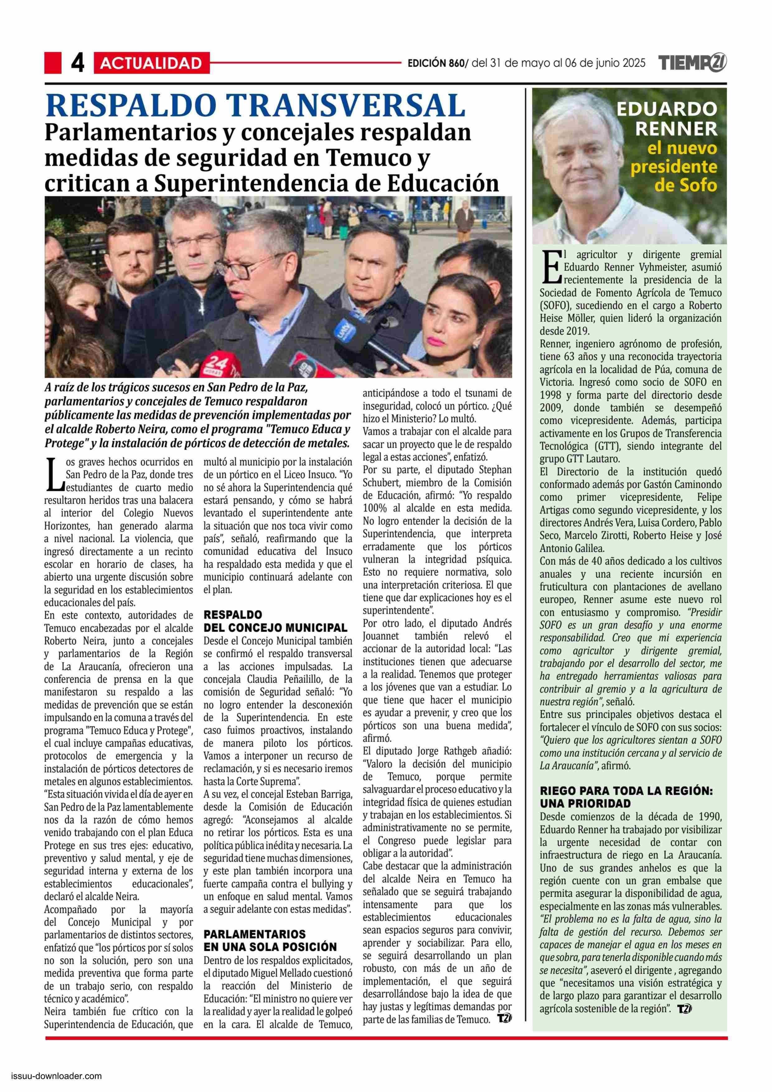 | Título: | Parlamentarios y concejales respaldan medidas de seguridad en Temuco y a Superintendencia de Educación |