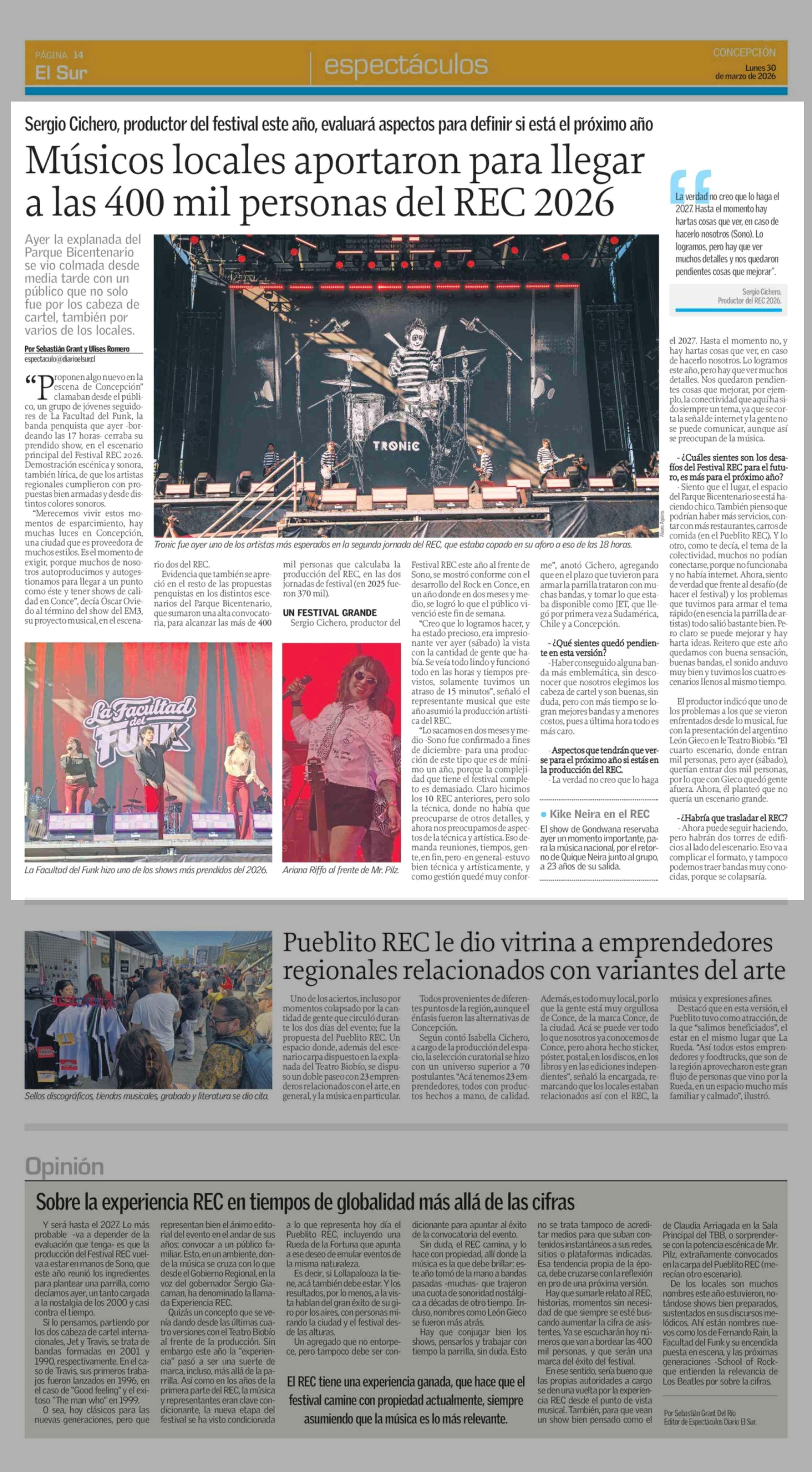 Título: Músicos locales aportaron para llegar a las 400 mil personas del REC 2026