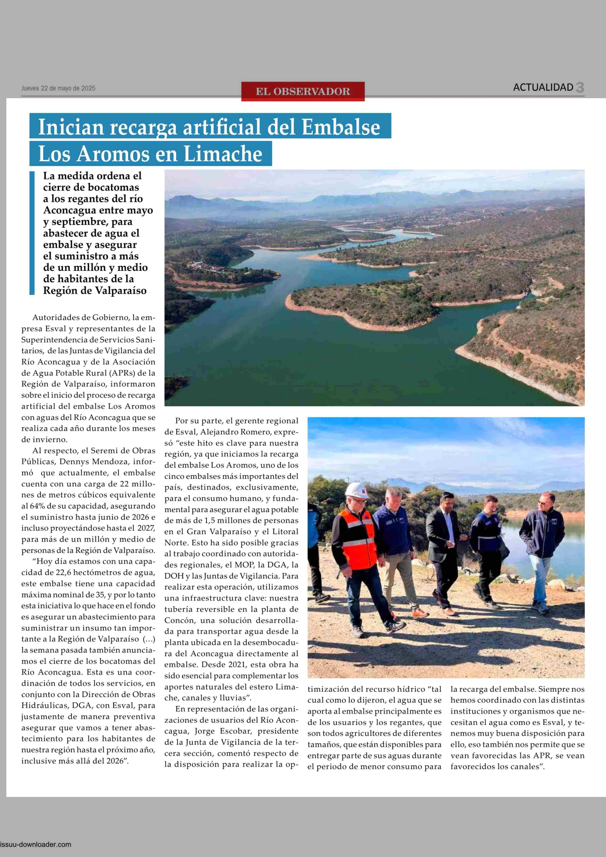 Inician recarga artificial del Embalse Los Aromos en Limachel 22-05-2025 El Observador Vespertino |