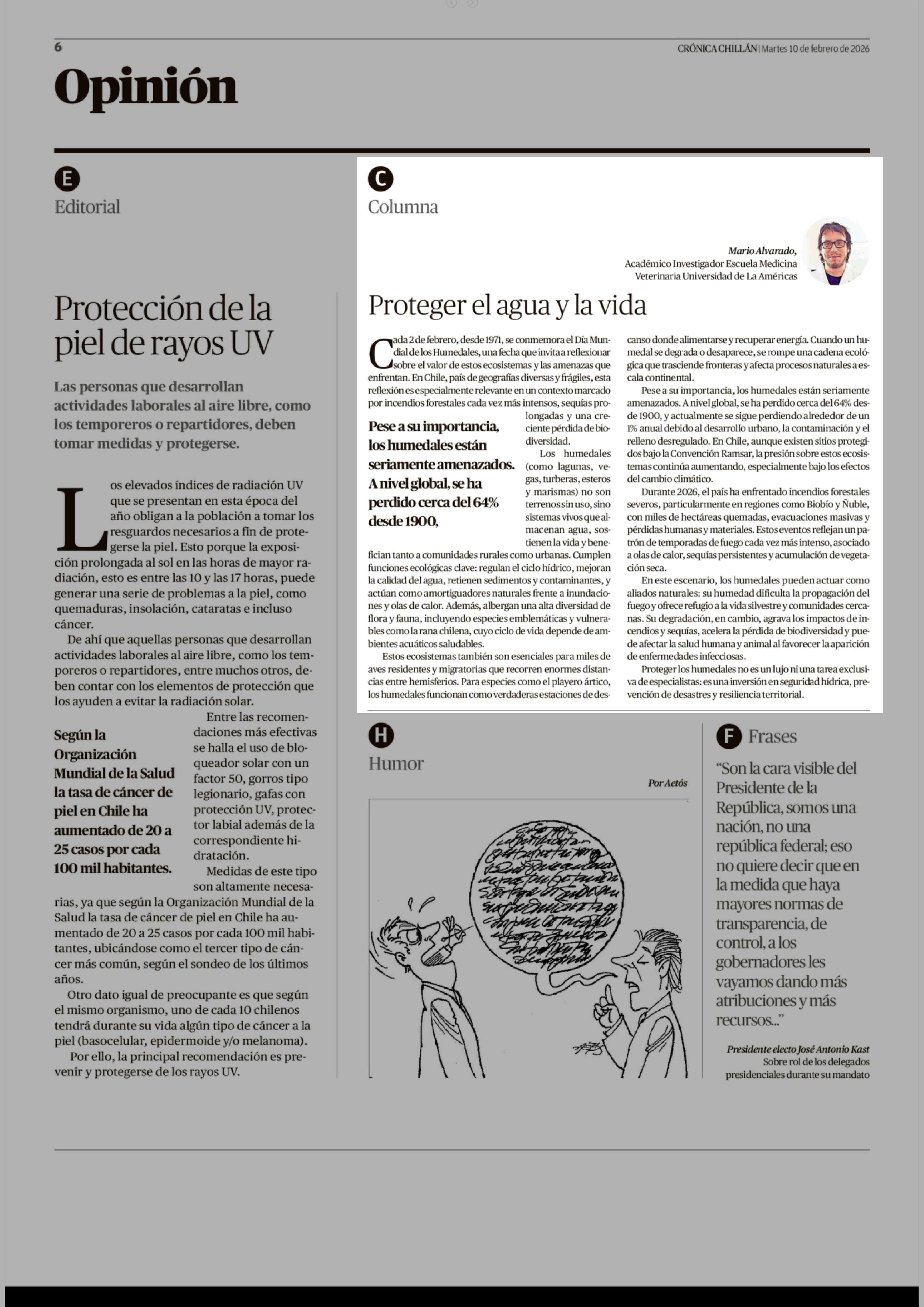 Columnas de Opinión: Proteger el agua y la vida 10-02-2026 Crónica de Chillán |